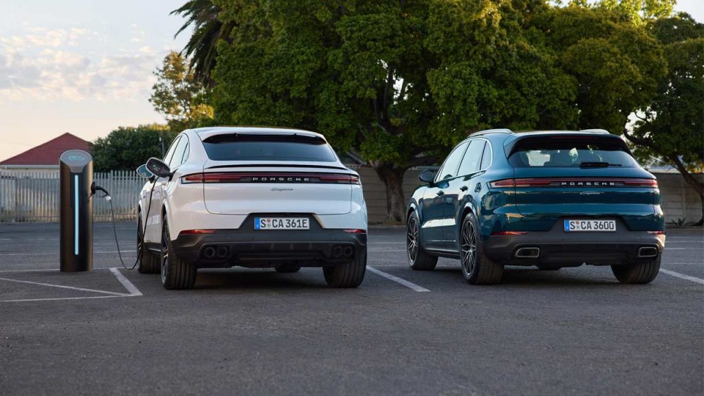The Cayenne E-Hybrid packs the aforementioned V6 petrol engine combined with a new 130 kW (177 metric hp) electric motor, offering a combined power output of 346 kW (470 metric hp). Porsche claims a combined pure-electric WLTP range of between 66 to 74 km (41-46 mi), thanks to upgrading the battery pack capacity from 17.9 kWh to 25.9 kWh. A new 11 kW onboard charger now shortens the charging time.