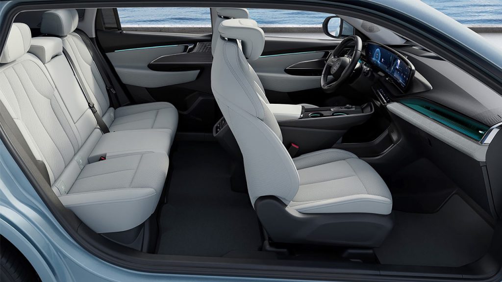 The standard variant packs a 68-kWh lithium-ion battery pack that is estimated to offer a CLTC range of up to 545 km (339 mi), while the larger 79.7-kWh pack is estimated to offer a CLTC range of up to 620 km (385 mi).