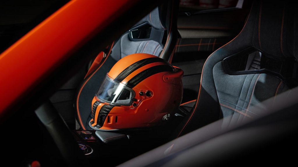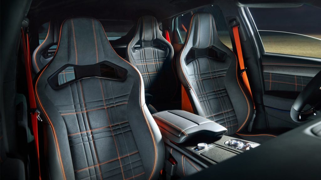 The cockpit boasts carbon fibre bucket seats, a G-Matrix strut brace behind the bucket seats, and of course, flashes of Magma and orange wherever possible. The upholstery is a combo of black Nappa leather and suede.