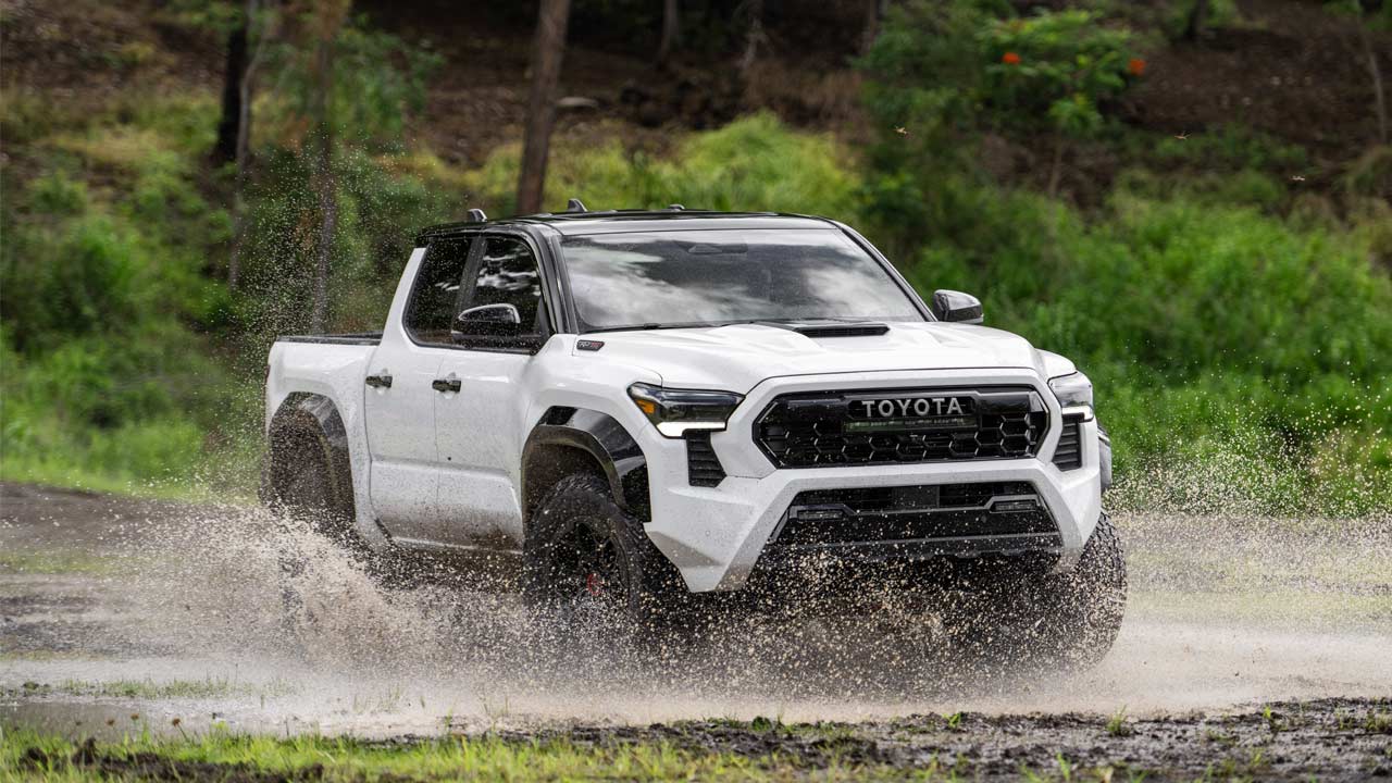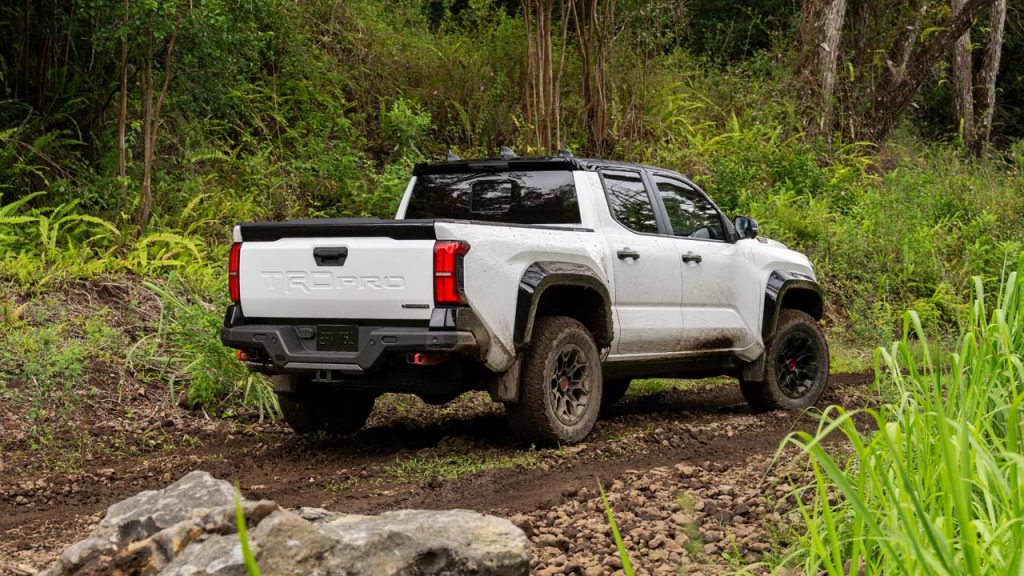Maximum towing capacity for Tacoma is rated at 2,948 kg (6,500 lbs) on SR5 i-FORCE and TRD PreRunner XtraCab trims, and maximum payload increases to 775 kg (1,709 lbs) on TRD Off-Road. A bunch of supporting features is also available, including Trailer Brake Controller, Trailer Backup Guide, Digital Display Mirror, Straight Path Assist, and 360-degree cameras for a top-down view.
