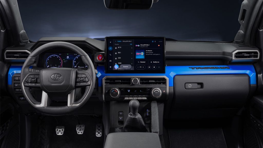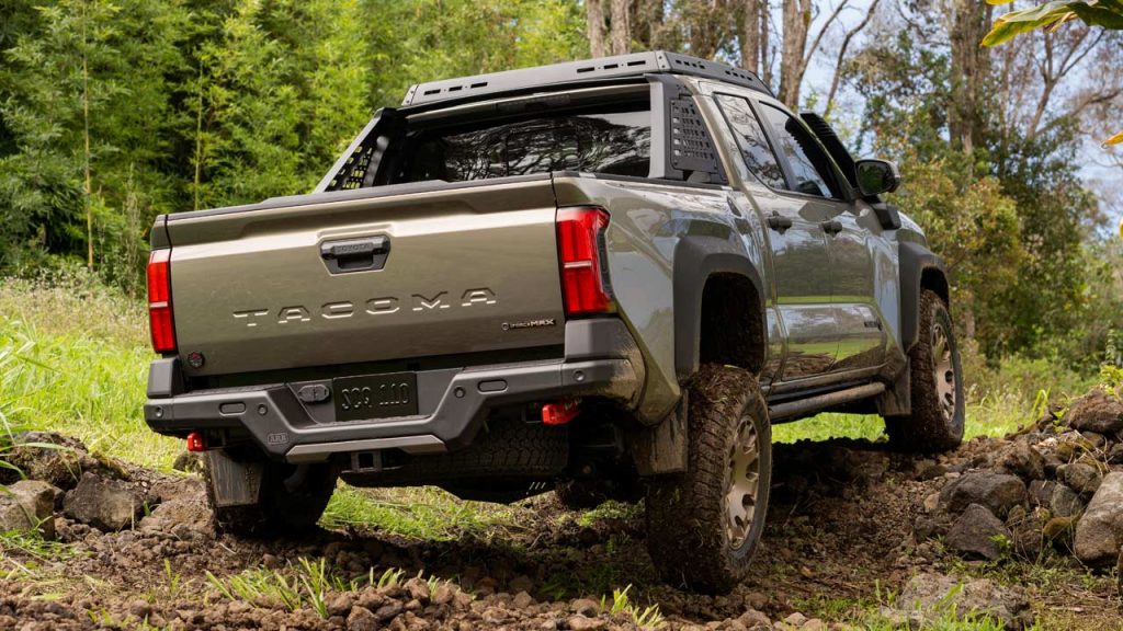 Moving on to the juicy bits of the story, the 2024 Toyota Tacoma as standard is powered by a 2.4-litre 4-cylinder turbo petrol engine that pumps out 207 kW (278 bhp/281 metric hp) and 430 Nm (317 lb-ft) of torque, coupled with an 8-speed automatic transmission. But do note that for entry-level models, this engine offers 170 kW (228 bhp/231 metric hp) and 329 Nm (243 lb-ft). There’s also a 6-speed manual transmission option with automatic rev-matching and anti-stall technology; in this case, the output figures are 201 kW (270 bhp/273 metric hp) and 420 Nm (310 lb-ft).