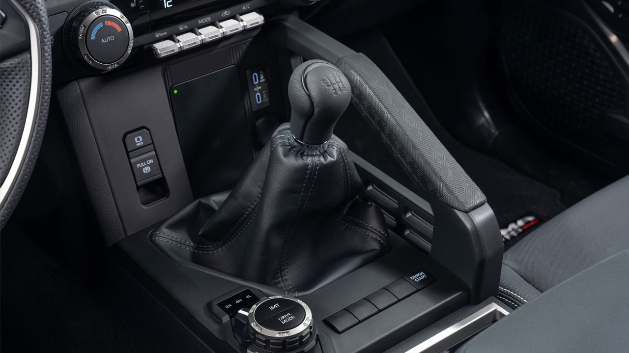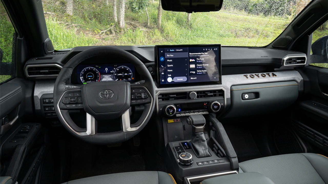 Tacoma also now gets four-wheel disc brakes for increased braking performance compared with the previous model, while TRD models and above are equipped with a larger front brake package. TRD models and above equipped with i-FORCE MAX add a larger rear brake package. An electronic parking brake allows for low-speed radar cruise control and a brake hold function. For an improved steering feel and to facilitate the incorporation of additional safety and convenience features, Tacoma will now have electric power steering.
