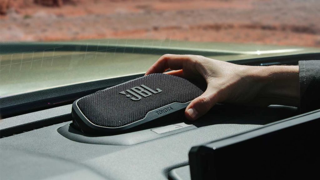 On the inside, key highlights include a new 8-inch or available 14-inch touchscreen display; wireless Apple CarPlay & Android Auto connectivity; available Qi wireless charging pad; a 12.3-inch digital gauge cluster standard on higher trims (7-inch for lower trims); available Digital Key, and an available 10-speaker JBL audio system. Notice that JBL Flex portable speaker that can be docked on the dashboard.