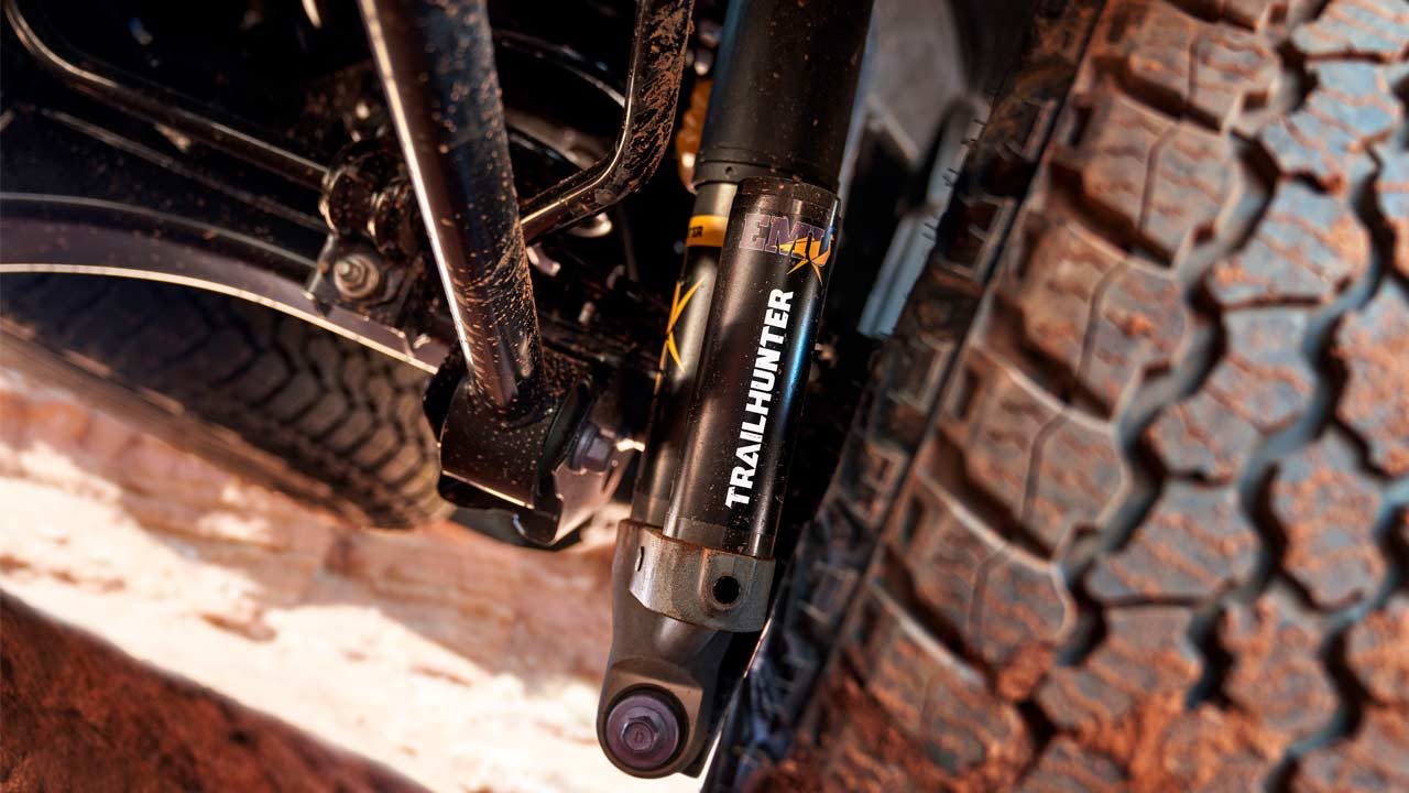 Tacoma now features suspensions tuned specifically to each trim. For instance, TRD Sport has red TRD sport-tuned shocks for a more responsive feel. The TRD Off-Road trim is equipped with monotube Bilstein remote reservoir shocks for extended wheel travel and greater heat dissipation and includes an end stop control valve (ESCV) that is said to offer increased damping force as the suspension comes closer to full bound stroke. TRD Pro comes with FOX’s new QS3 three-way adjustable internal bypass shocks with remote reservoirs for improved high-speed off-road performance and FOX Internal Floating Piston (IFP) rear bump stops to improve bottom-out feel. Trailhunter includes new Old Man Emu (OME) 4×4 Suspension by ARB that is apparently tuned for optimum levels of off-road control and load-carrying capability. Limited trim features a new Adaptive Variable Suspension (AVS) system that constantly adjusts damping forces based on changing road conditions.