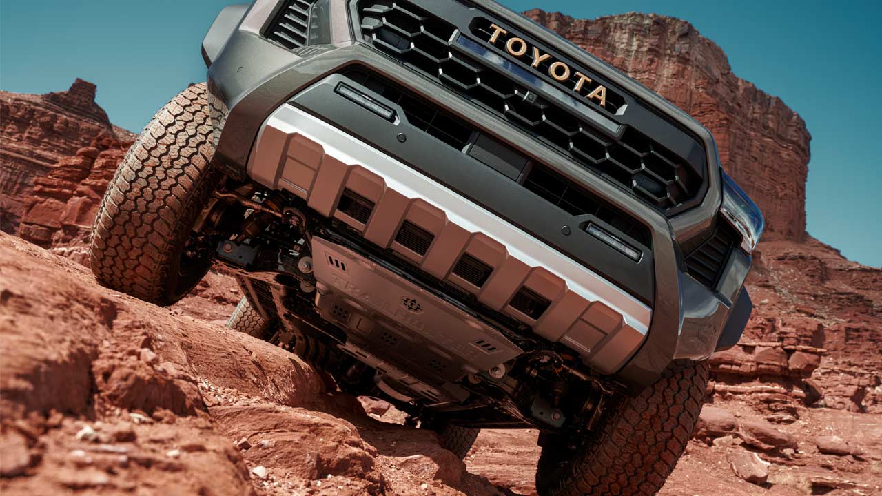 Another key highlight of the new Tacoma is an available front stabilizer bar disconnect that increases flex at the push of a button. With the front stabilizer bar disconnected, Tacoma’s articulation increases by 10% compared with the previous-gen truck.
