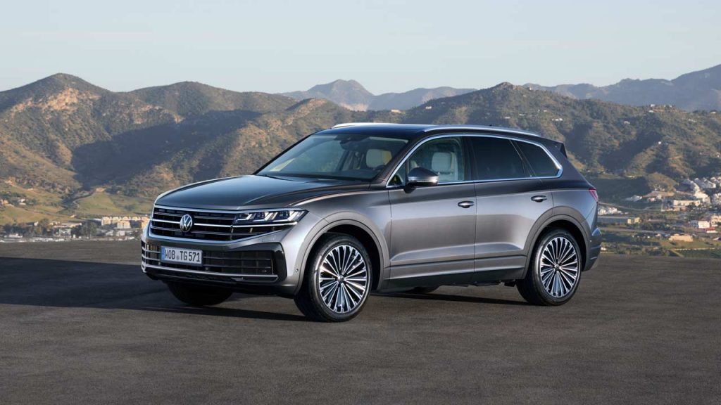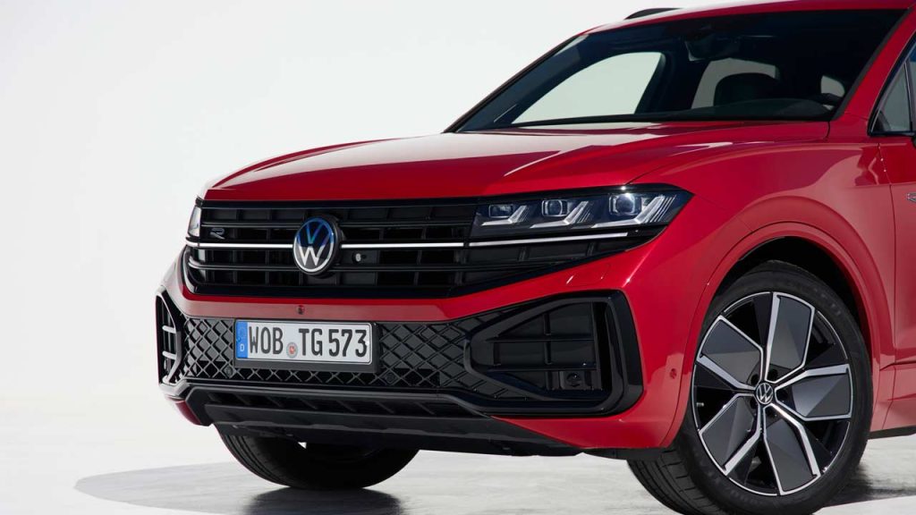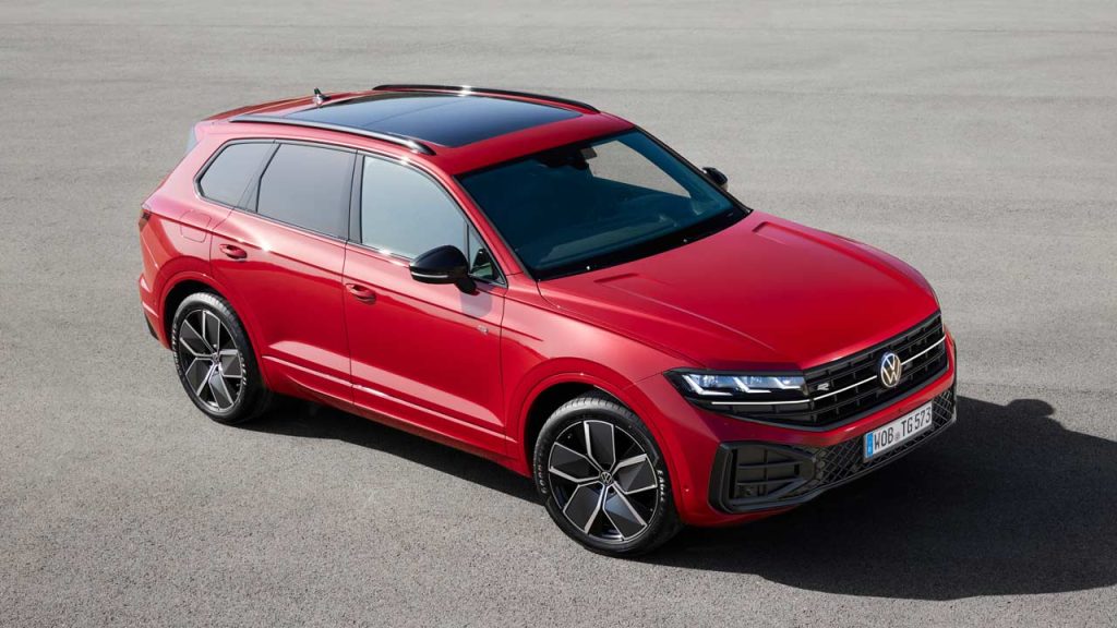 Volkswagen has facelifted its Touareg SUV with styling revisions and tech upgrades. The lineup includes Touareg, Touareg Elegance and Touareg R-Line, with prices in Germany starting at €69,200, €75,070 and €79,660, respectively. There’s also the Touareg R eHybrid, priced at €93,870. All prices include 19% VAT. The new Touareg boasts—among other things—an improved suspension setup that is claimed to offer a perfect blend of performance and comfort.