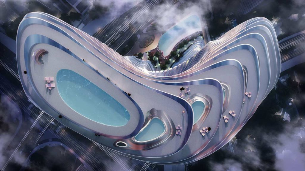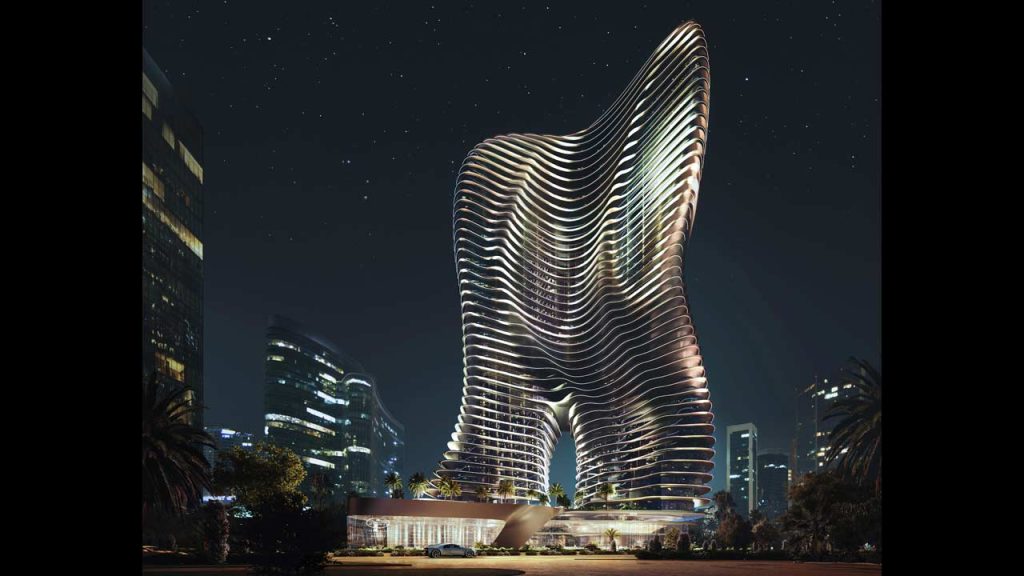 Apparently, luxury car brands and real estate are closely related. It in fact is, if you think about it. I mean, it’s mostly the folks in real estate who could afford to buy sports cars and hypercars. And so, one way to actually combine these two is to sell luxury car-branded apartments. In case you didn’t know, Aston Martin has a 66-floor luxury condominium tower in Miami. Other luxury car brands probably have something similar, but Bugatti recently teamed-up with Dubai-based developer Binghatti to build a sci-fi-looking apartment in Dubai.