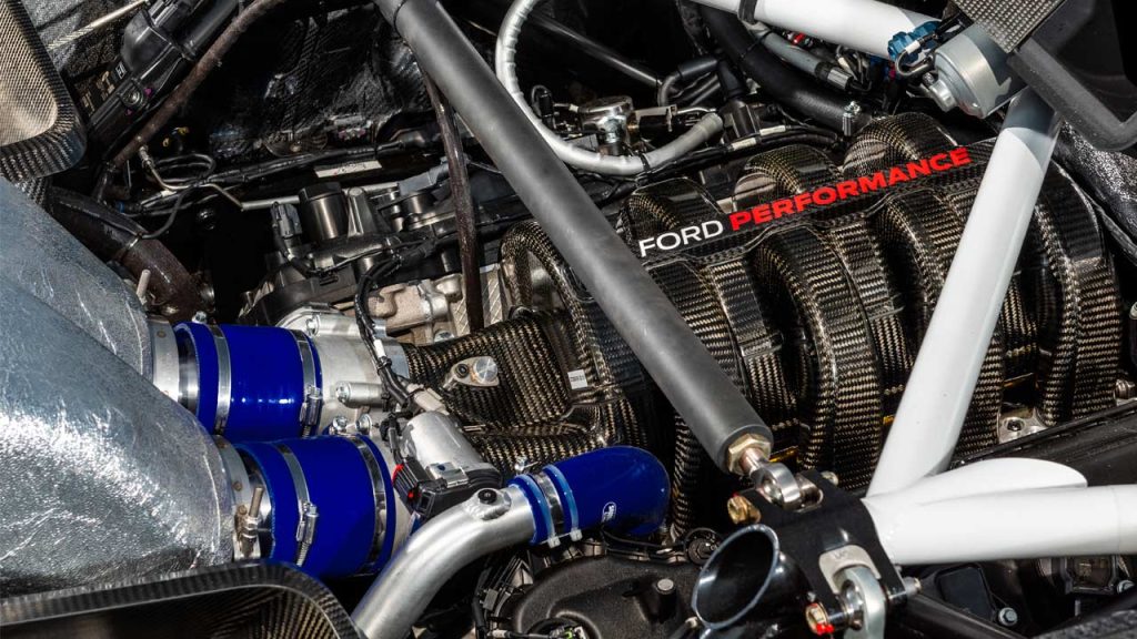 Powering the Mustang GT3 is a Coyote-based 5.4L naturally aspirated V8 engine—which will be assembled by longtime World Rally Championship partner and two-time championship-winning team M-Sport. Notice the carbon fibre cover on the engine as well.