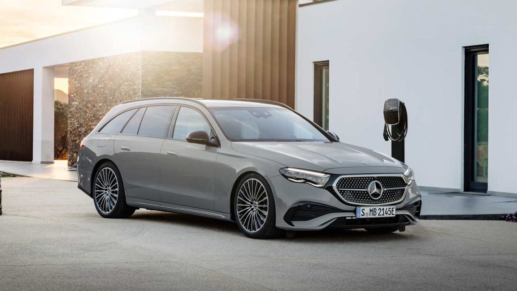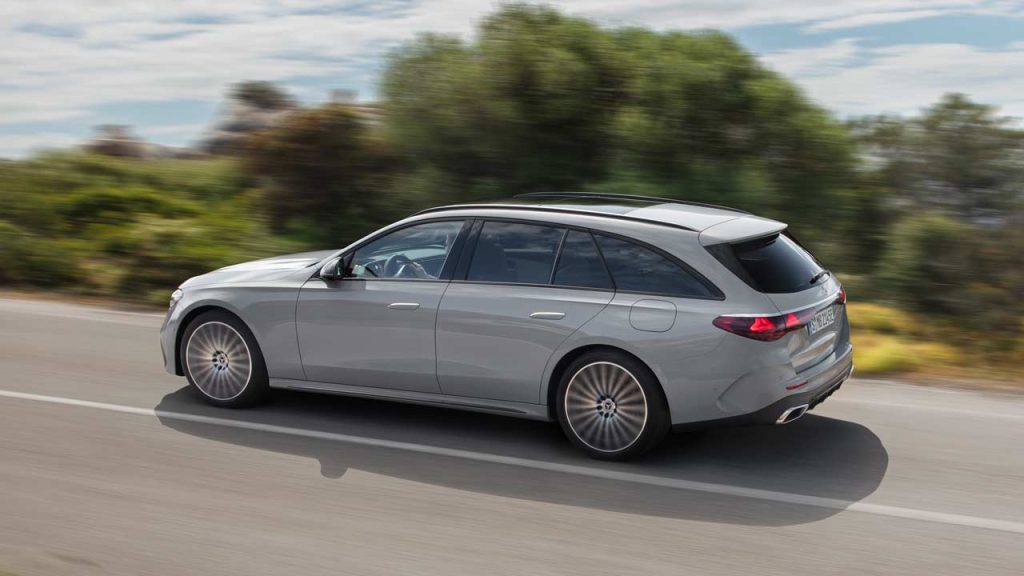 At launch, the new E-Class Estate in Europe will be available with E 200 (2.0L petrol; 150 kW/204 metric hp and 320 Nm/236 lb-ft), E 220 d (2.0L diesel; 145 kW/197 metric hp and 440 Nm/324.5 lb-ft) and E 300 e (PHEV; 230 kW/313 metric hp and 550 Nm/406 lb-ft) options. The PHEV model is claimed to offer a pure electric range of up to 113 km (70.2 mi); the sedan (depending on the variant) claims up to 115 km (71.5 mi).