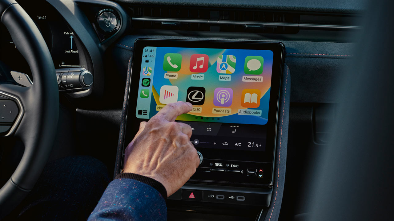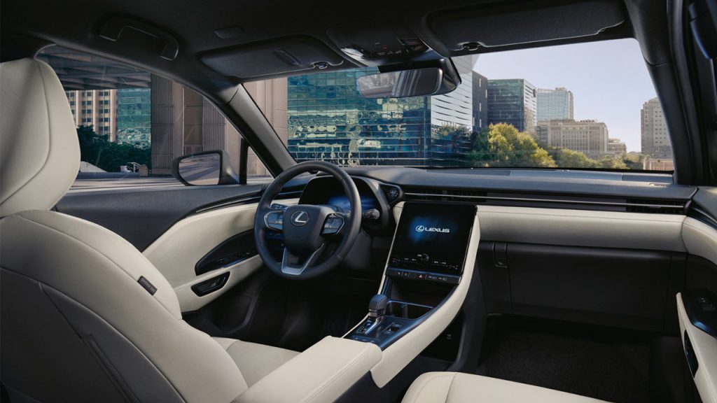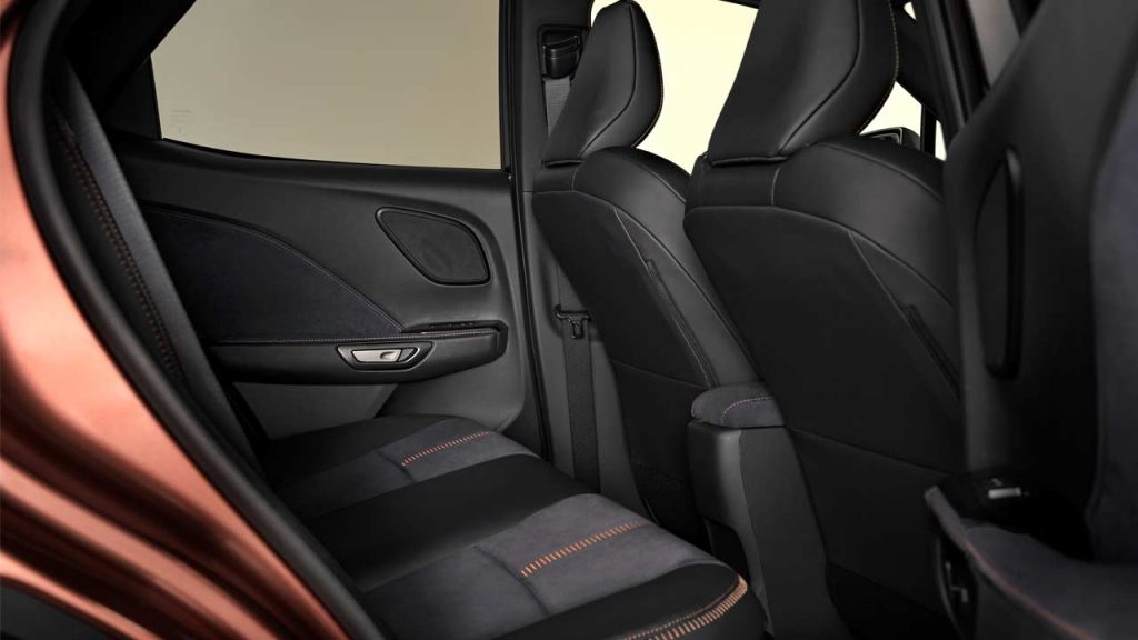 The cabin and dashboard look significantly different compared with the Toyota Yaris Cross, as you would expect. I mean, you can’t just keep the same dashboard, wrap it in leather and change the logo. The photos here show different variants with mono and bi-tone themes. There’s a fairly large 9.8-inch central touchscreen, and there’s also gonna be a 12.3-inch digital driver display—which I’m told is an optional extra. Other key highlights include an optional head-up display, wireless Apple CarPlay connectivity, Android Auto (wired), an optional 13-speaker Mark Levinson audio system, and 64-color ambient lighting. Smartphone-based digital key, Panasonic’s nanoe-X air purification technology, and a power back door are all optional extras.