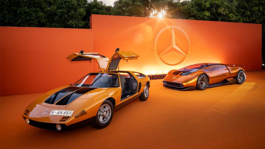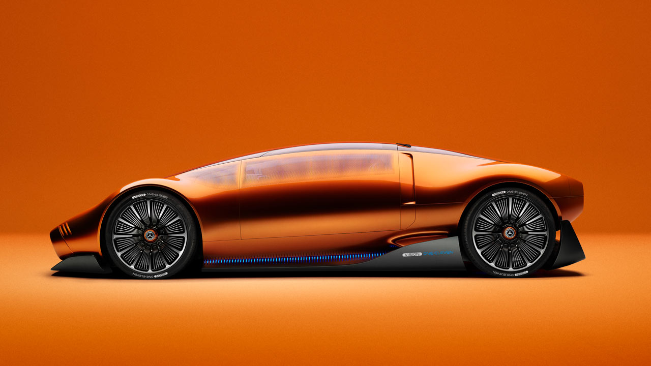 Mercedes-Benz took the wraps off its latest vision (concept), the Vision One-Eleven—which it says is a modern interpretation of Wankel engine-powered C 111 experimental vehicles from the 1960s and 70s. The concept also showcases the latest motor and battery technology.