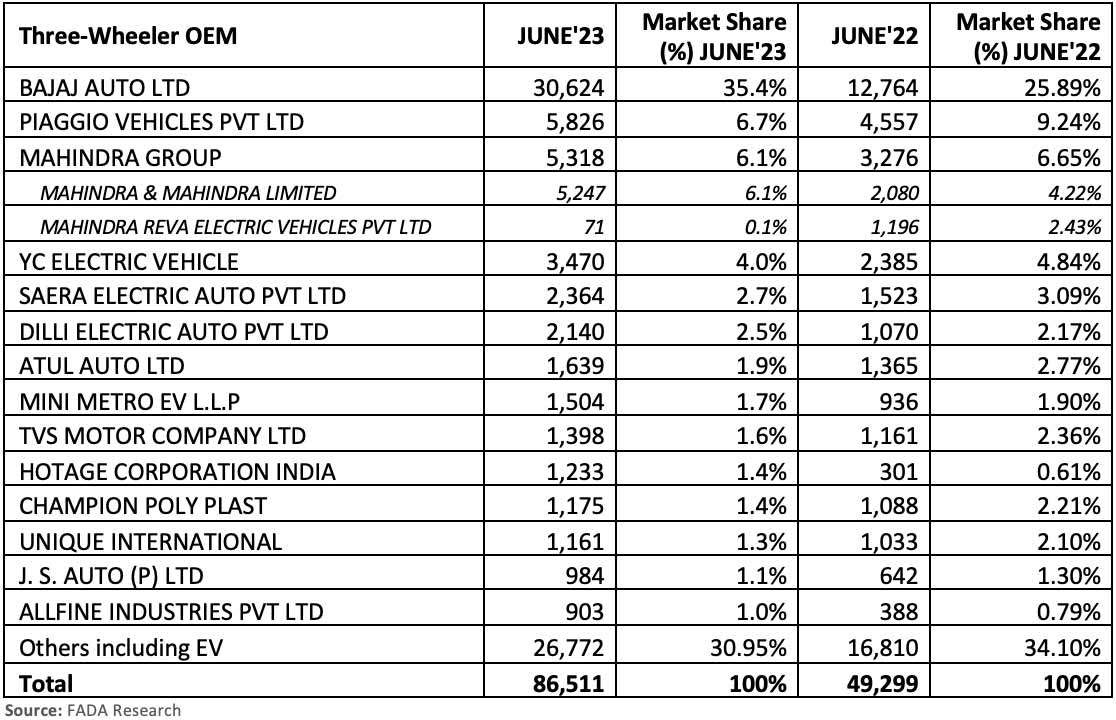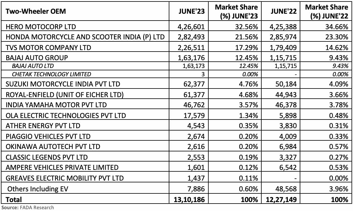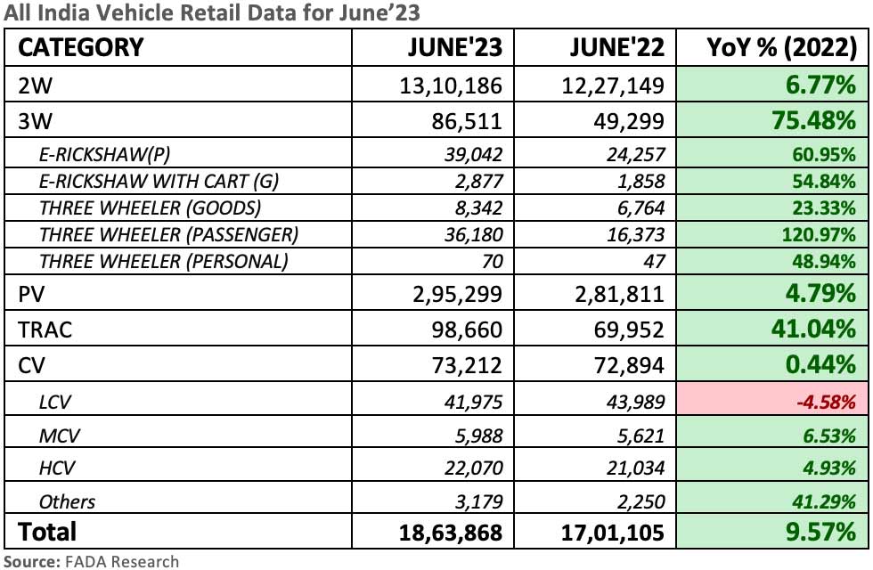 The three-wheeler segment continues to show the highest percentage of growth among all other segments. In fact, FADA President Manish Raj Singhania says that the month of June 2023 registered all-time highs for 3W, PV and Tractor segments when compared with all the previous June months. He also said that the shift towards alternative fuels, predominantly EVs, continues to play a significant role in driving this growth. As for the 2W segment, Mr. Singhania says that the segment wrestled with supply constraints from certain OEMs and a softer demand attributed to economic conditions and higher entry-level motorcycle costs.