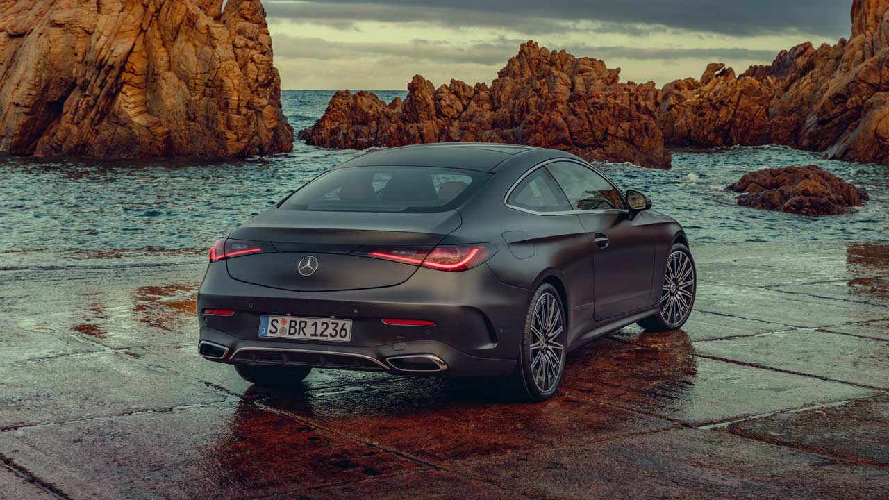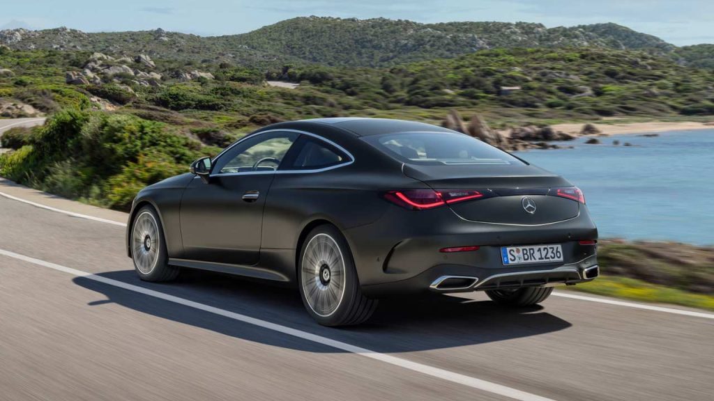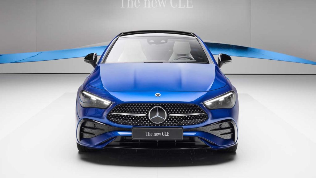 In the meantime, let’s take a brief look at what’s all the hoopla, starting with the design. The CLE looks neither like the new-gen C-Class nor the new-gen E-Class, and that’s probably the idea. I mean, it is CLE, in case you forgot. Apparently, the designers were going for a shark-nose-inspired front fascia with a low-slung bonnet and slim LED headlights. As is typical with Merc coupés, the grille has a single louvre and a central star. New LED High Performance headlights with so-called trifunctional torch for daytime running lights, position lights and direction indicators are standard, while Digital Lights with and without projection function are available as optional extras.