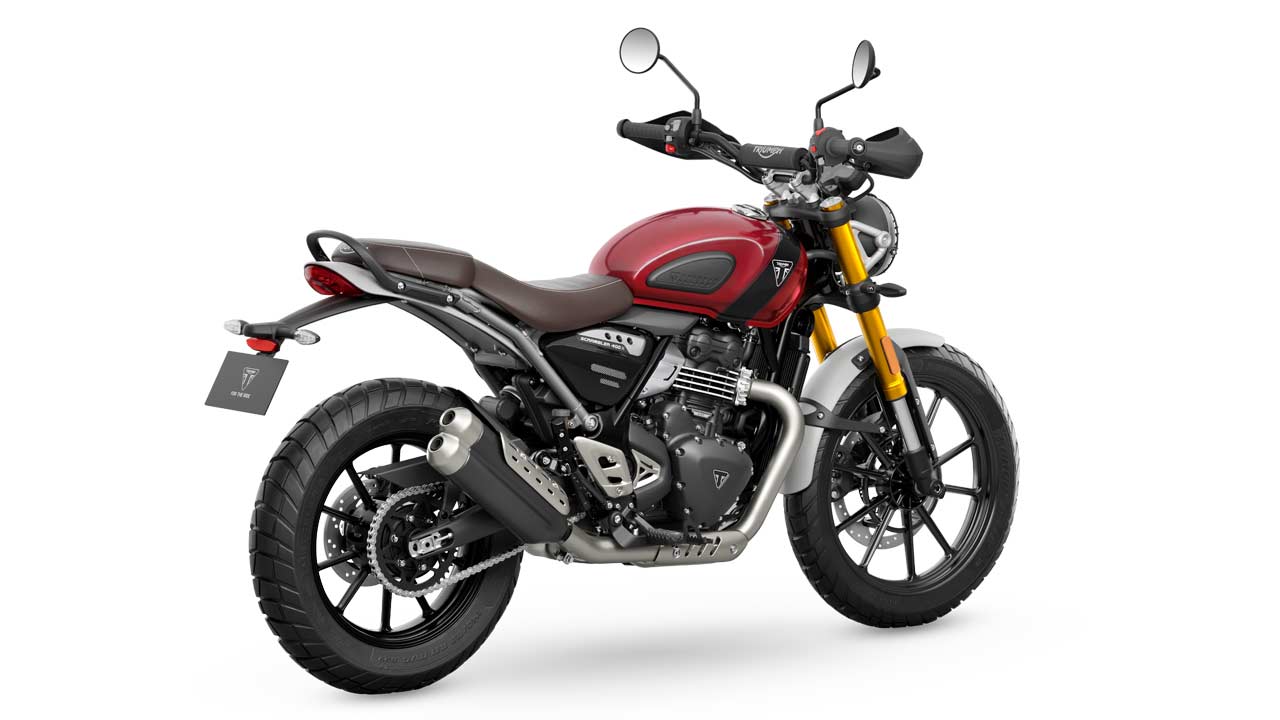 Suspension setup on both models is 43 mm upside-down forks at the front and a pre-load adjustable rear monoshock. The Speed 400 gets a 300 mm disc at the front, while the Scrambler 400 X boasts a 320 mm one. Bosch dual-channel ABS comes standard on both (switchable on Scrambler 400 X for off-road use), as does the switchable traction control. A steering lock and an anti-theft immobilizer also come standard.