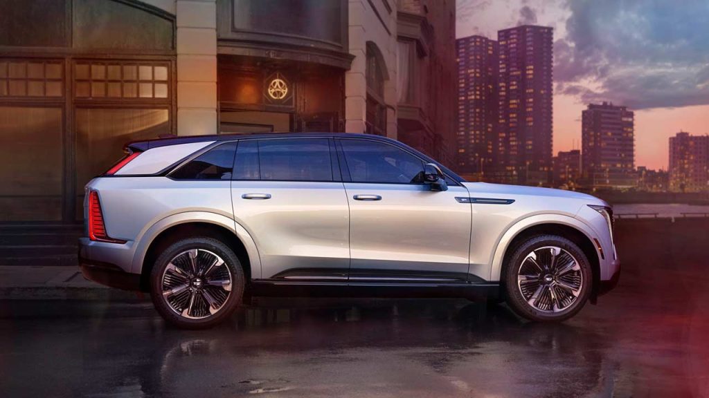 Speaking of looks, the Escalade IQ follows the design language of its aforementioned BEV siblings; in other words, it looks significantly different from the Escalade we’ve known so far. The front fascia is full of LEDs, as was the case with the Lyriq and the Celestiq. On the side, you can notice that the roof doesn’t slope down aggressively, which means the rear occupants don’t have to struggle for headroom. And, those aerodynamically designed wheels measure 24-inches, the largest ever offered on a Cadillac. At the rear, you got more LEDs, because, why not?