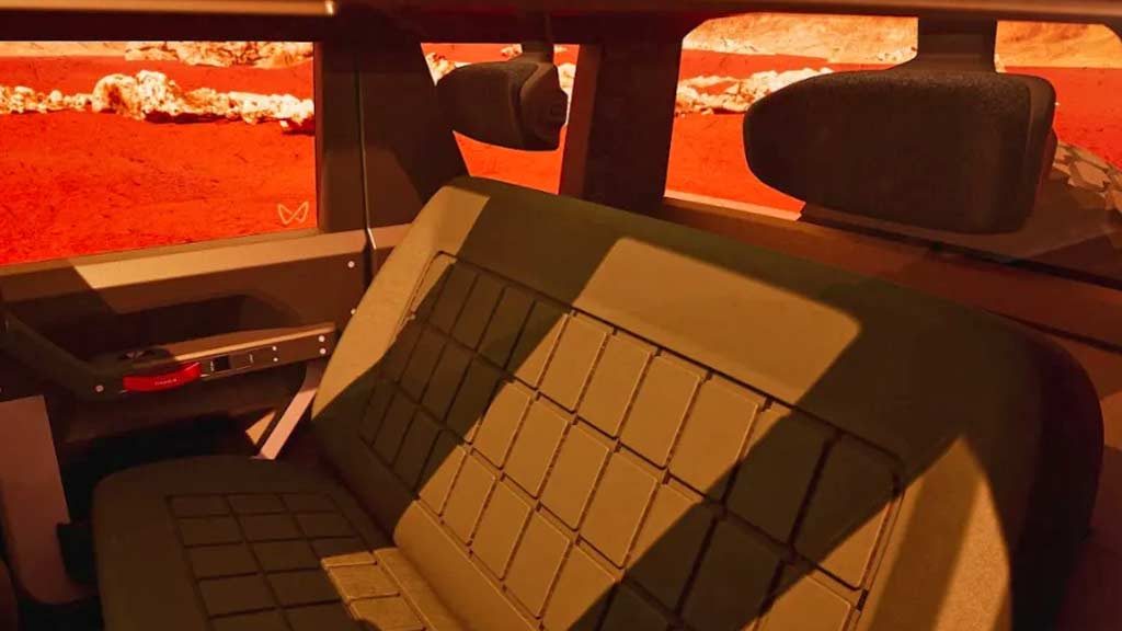 Apparently, the sharp, geometric surfaces and near-vertical windows are to maximize the interior space. And, there’s certainly a good amount of interior space, thanks to the utilitarian, minimalistic approach for the dashboard, centre console and door panels. The fabrics contain a material made of 50% recycled PET, because, you know, you gotta have those these days. Another key highlight of the Vision Thar.e is modularity – some components of the vehicle are swappable.