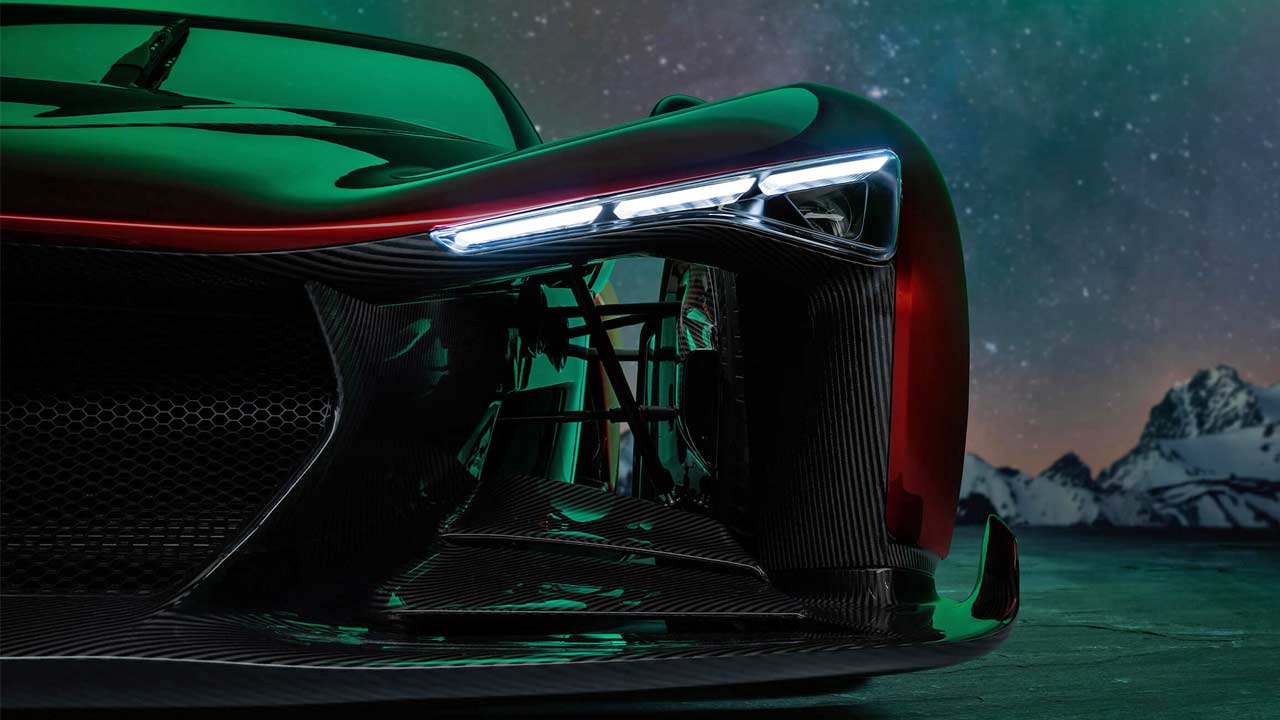 The Aurora is a fairly large hypercar, measuring 4,819 mm long, 2,020 mm wide and 1,117 mm tall, with a wheelbase of 2,800 mm.