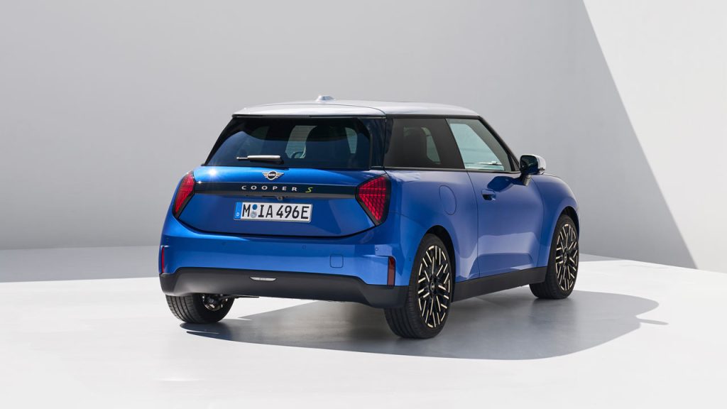 The side profile remains mostly unchanged except for those new set of wheels and the lack of side scuttles on the wings, and if you walk towards the rear of the car, you’ll notice some significant changes such as angular taillights that better suit the Union Jack light signature and a restyled tailgate with a black bar that connects the taillights. The rear fascia now looks mature and a bit serious as opposed to the light-hearted looks of the original model, which depending on your perspective, might or might not be a good thing. But anyway, Mini claims a Cd figure of 0.28 for the new Cooper SE, billed as “outstanding” for a small car segment.