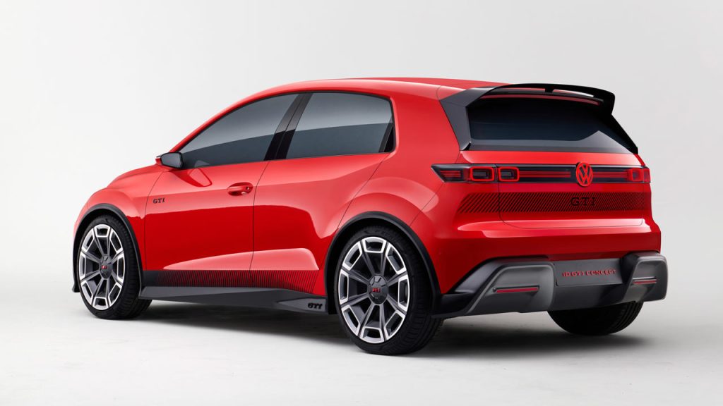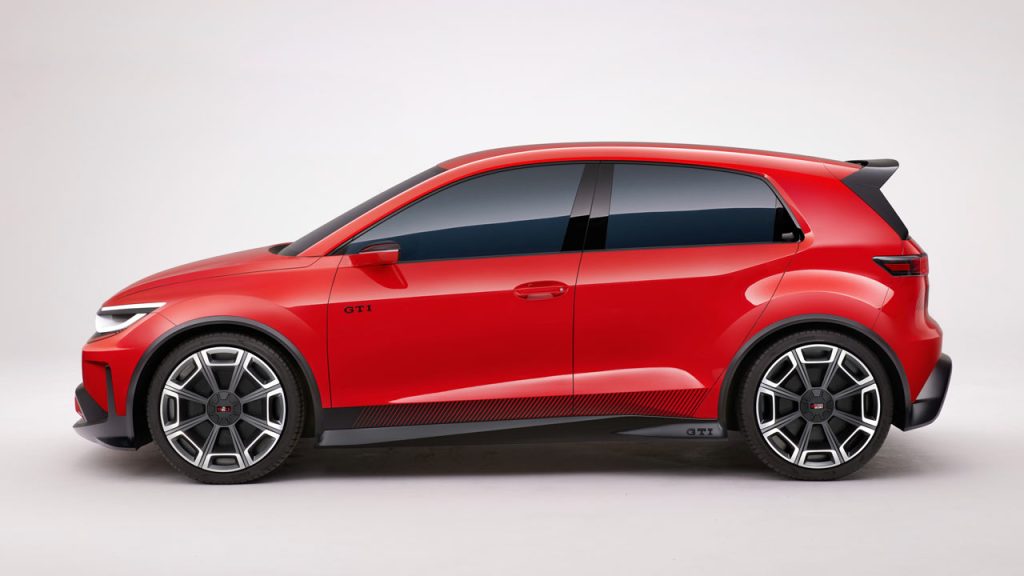 By 2027, Volkswagen plans to launch 11 all-electric models—ranging from a compact car with a price tag of less than €25,000 through to a family saloon. The ID. GTI concept we’re seeing here is also gonna be one of those, which of course, is an all-electric version of a celebrated nameplate.