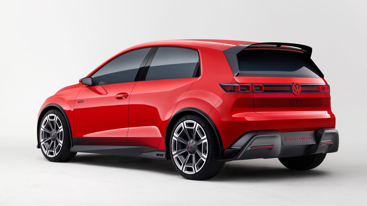The ID. GTI concept distinguishes itself from its ID. 2all sibling with GTI-specific front bumper with a honeycomb-patterned grille; vertically mounted DRLs; 20-inch GTI Concept alloy wheels; a roof spoiler; a sporty rear bumper with large diffuser, and of course, smoked-effect taillights with 3D clusters.