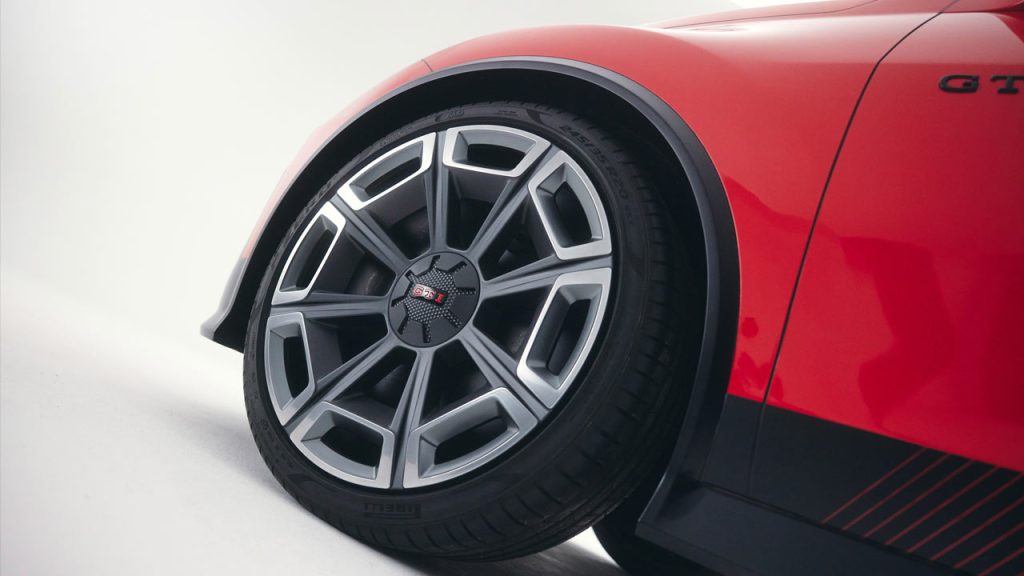Well, on the inside, as if a large digital cluster (10.9-inch) and a central touchscreen (12.9-inch) aren’t enough, there’s an augmented reality head-up display as well that projects data onto the entire windscreen – stretching all the way to the front passenger. The data displayed depends on the driving mode. In standard driving mode, for example, information such as the speed or current range is projected in front of the driver and front passenger. And, if you take the car to Nürburgring Nordschleife and switch to GTI mode, the course of the track and the position of the car are displayed on the far left of the windscreen.