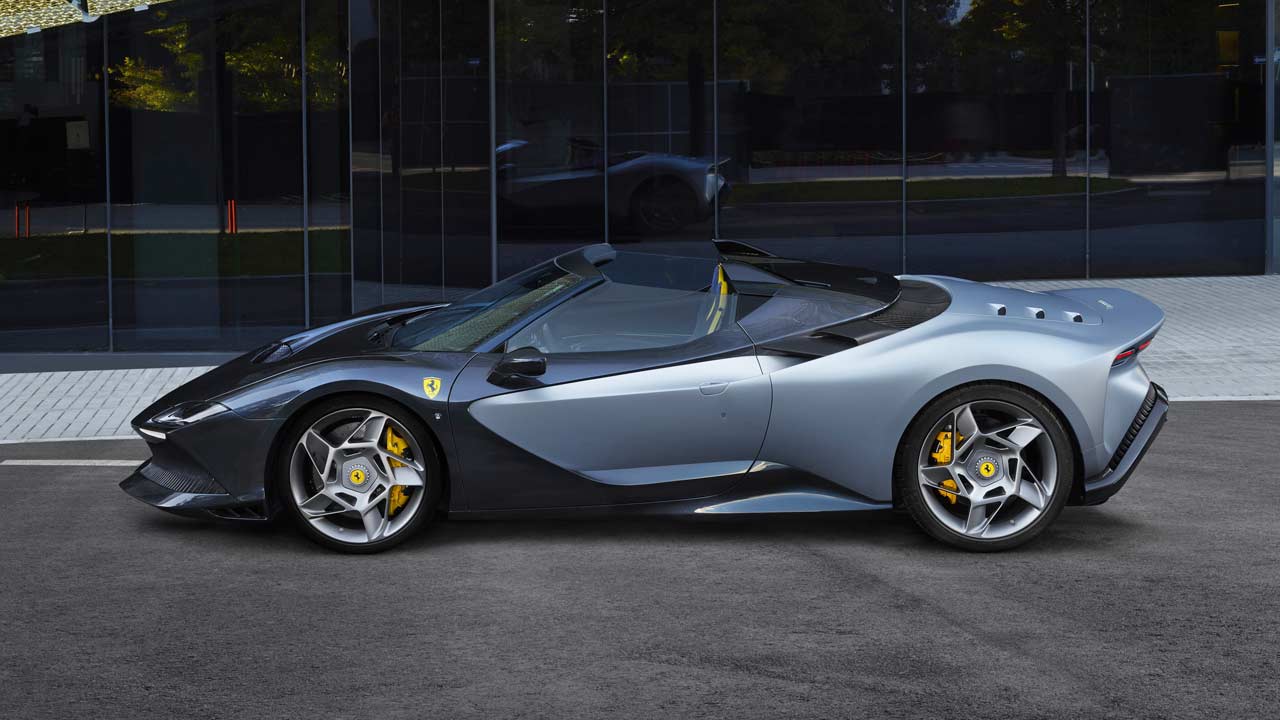 Other models from the brand inspired some of the styling elements. The taillights, for example, were inspired by those on the Roma; the windscreen from the 296 GTB/GTS, and apparently, those wheels are a modern take of those on the F40. As you can see, the bodywork has a dual-tone paint combo of Blu Scuro Stellato and matte Argento Micalizzato. The gloss carbon fibre bits are finished in Blue Sandstone.