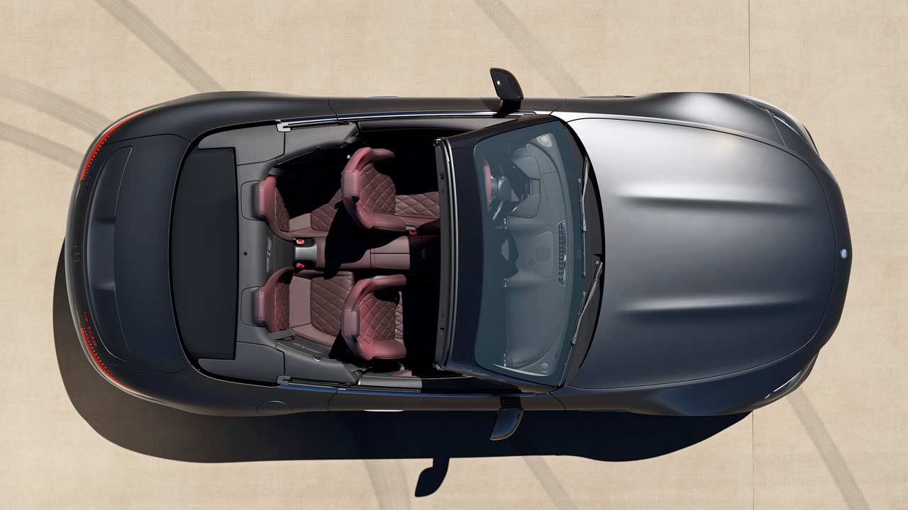 Visually, the SL 63 S E Performance doesn’t look all that different from its “regular” SL 63 sibling. However, the grille and the badges are dark; the model badge is red. As standard, the car rides on matt black 20-inch multi-spoke AMG light-alloy wheels, however, there are other 20- and 21-inch options. AMG ceramic high-performance composite brake system comes standard, with discs measuring 420 x 40 mm on the front axle (gripped by 6-piston fixed calipers) and 380 x 32 mm on the rear axle (gripped by single-piston floating calipers). AMG Active Ride Control suspension with semi-active roll stabilization and active rear-axle steering are also part of the standard equipment.