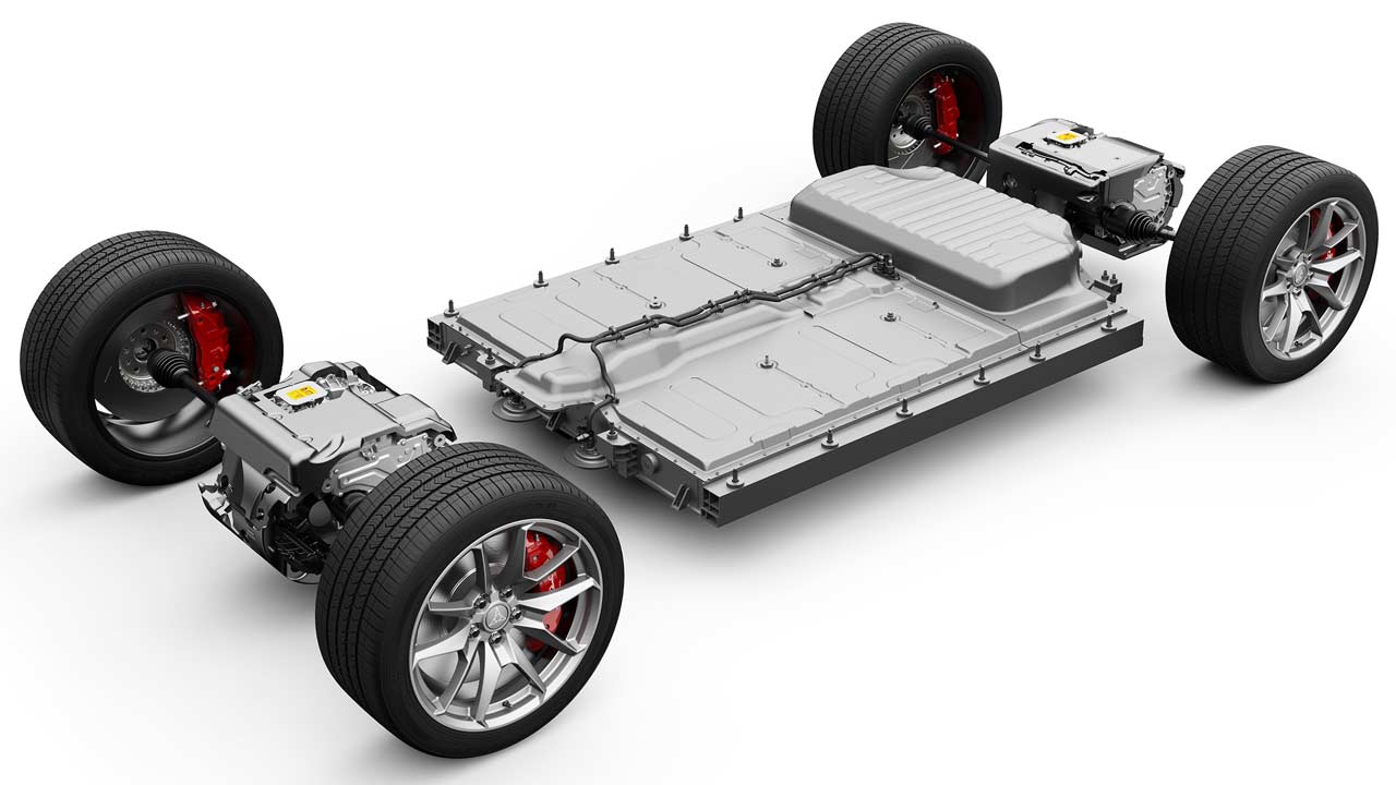 The all-electric Charger Daytona models feature a 400-volt architecture. As you can see from the rendering above, both front and rear axles get an EDM (an electric drive module incorporating an inverter, a gearbox and a motor), with each EDM capable of generating up to 250 kW (340 metric hp) and 407 Nm (300 lb-ft).