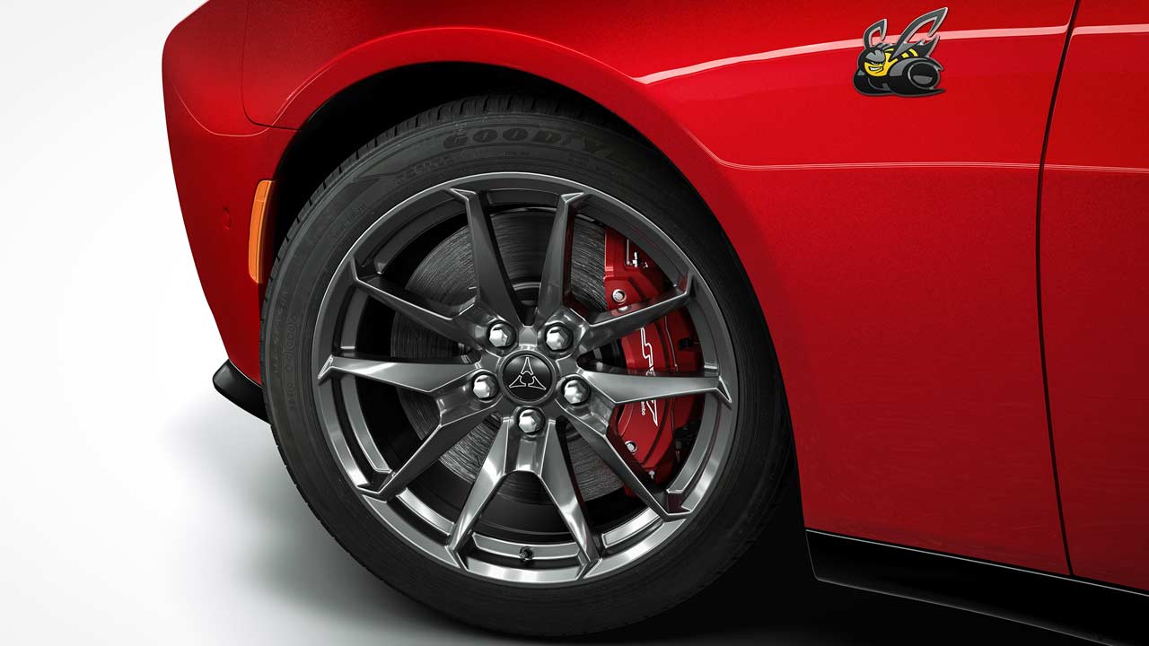 18-by-8-inch Tech Silver wheels are standard for Daytona R/T and 20-by-11-inch Satin Carbon wheels come standard on Daytona Scat Pack. Wheel options include 20-by-10-inch Black Noise wheels with the available Blacktop Package and 20-by-11/11.5-inch Luster wheels with Track Package.