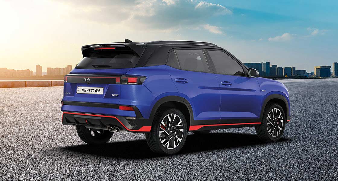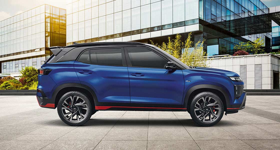 The Creta N Line is available in Titan Grey Matte, Abyss Black and Atlas White monotone paint options; the first one costs INR 5,000 extra. Dual-tone options include Thunder Blue with Abyss Black roof, Shadow Grey with Abyss Black roof and Atlas White with Abyss Black roof; all of these cost INR 10,000 extra.