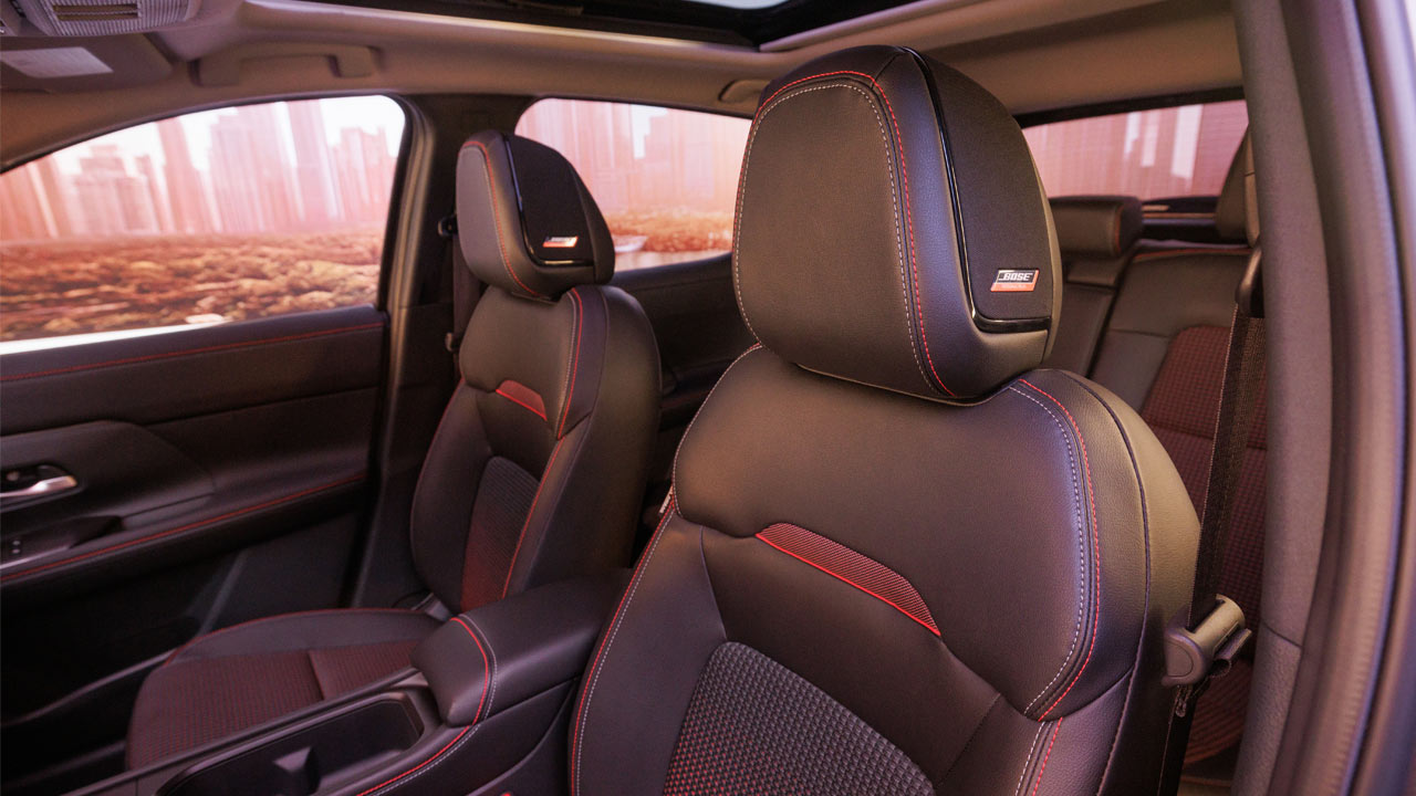 Inside, key highlights depending on the trim include a 12.3-inch touchscreen, a 12.3-inch digital cluster, wireless Apple CarPlay & Android Auto connectivity, a 6-way manually-adjustable driver’s seat, Nissan’s Zero Gravity seat design for both rows, USB Type-C ports, a wireless smartphone charging pad, auto AC, and a 6-speaker audio system. But if you’d like to spend more, the options list for the SR trim includes a 10-speaker Bose audio system with headrest-integrated speakers.