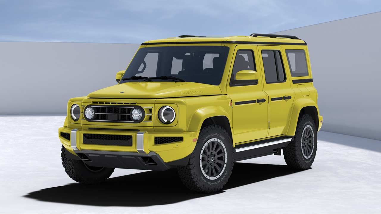 Visually, the Fusilier looks like a certain country’s copy of a G-Wagon, but that’s only when you view it from the front-three-quarter angles. From rear-three-quarter angles, it looks like something else, thanks to a split tailgate design and the lack of a tailgate-mounted spare wheel. Also, notice on the side that the rear quarter glass is smaller in height compared with the other two window glasses.