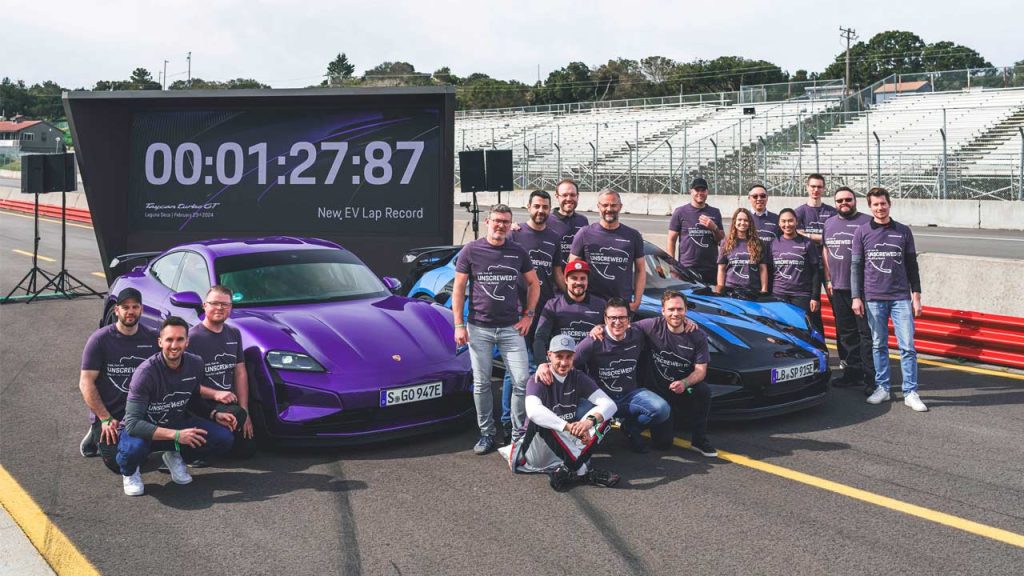 Last month, the prototype recorded a lap time of 7:07.55 minutes on the Nurburgring Nordschleife, beating the Taycan Turbo S’ record by 26 seconds. Of course, behind the wheel was Porsche development driver Lars Kern. On 23 February 2024, with a lap time of 1:27.87 min, the Taycan Turbo GT with Weissach package earned the title of fastest electric series-production car at the Weathertech Raceway Laguna Seca, with Lars Kern behind the wheel.