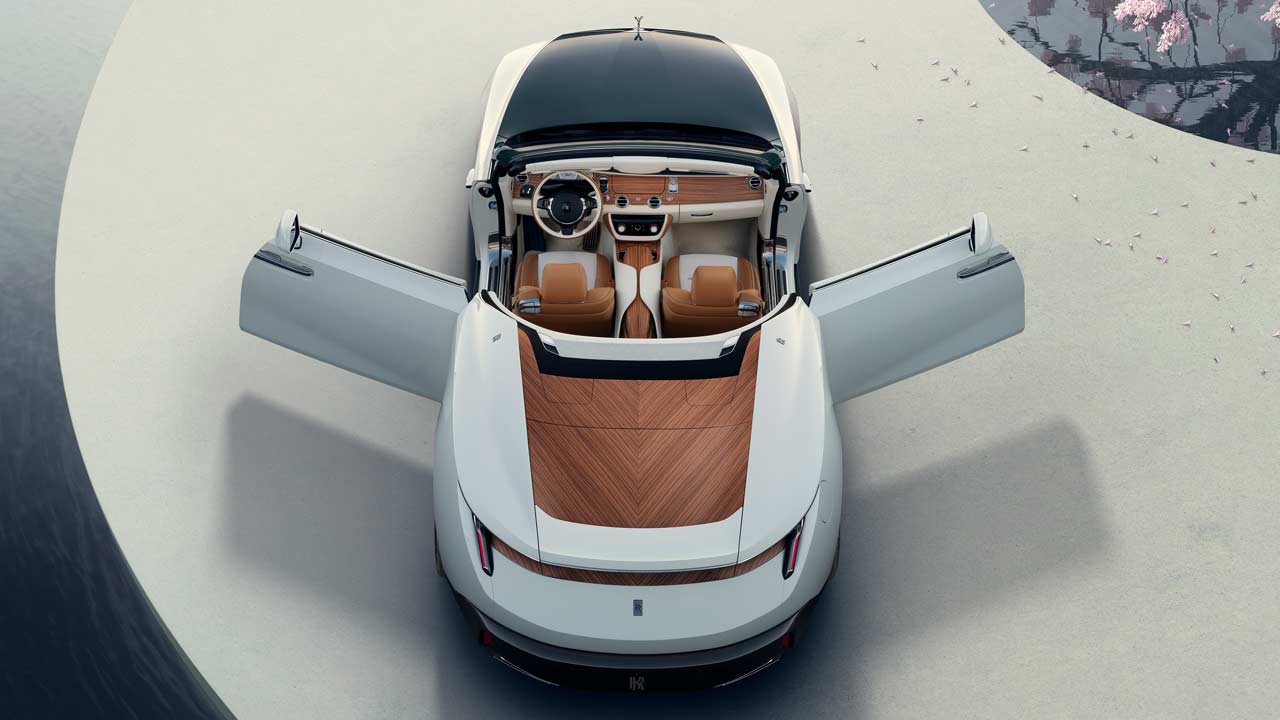 For the interiors, Santos Straight Grain wood has been used generously, despite challenges working with the delicate material. If not handled with great care, the wood tears when machined and checks (a crack that appears parallel to the grain) during the drying process. The wood has been used on the rear deck as well, where the grain of the veneer is laid at a perfect 55° angle. To achieve a perfect composition over complex geometry, Rolls-Royce artisans used a total of 233 wood pieces throughout Arcadia Droptail, with 76 pieces applied to the rear deck alone. The team spent a tremendous amount of time developing the Arcadia Droptail. In total, the wood pieces and protective coating required more than 8,000 hours of development, the company said.