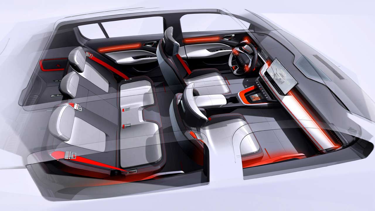 In case you’re wondering as to where are the headlights, well, they’re cleverly concealed within that dark curved styling element underneath the upper grille. Notice that the T-shaped light signatures at the front are mimicked at the rear. Besides a dual-tone paint scheme, there are some orange touches to add further contrast.
