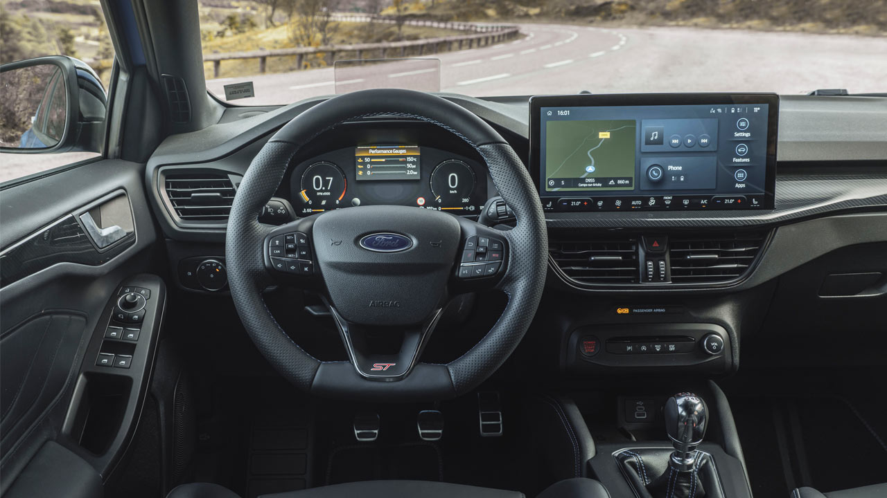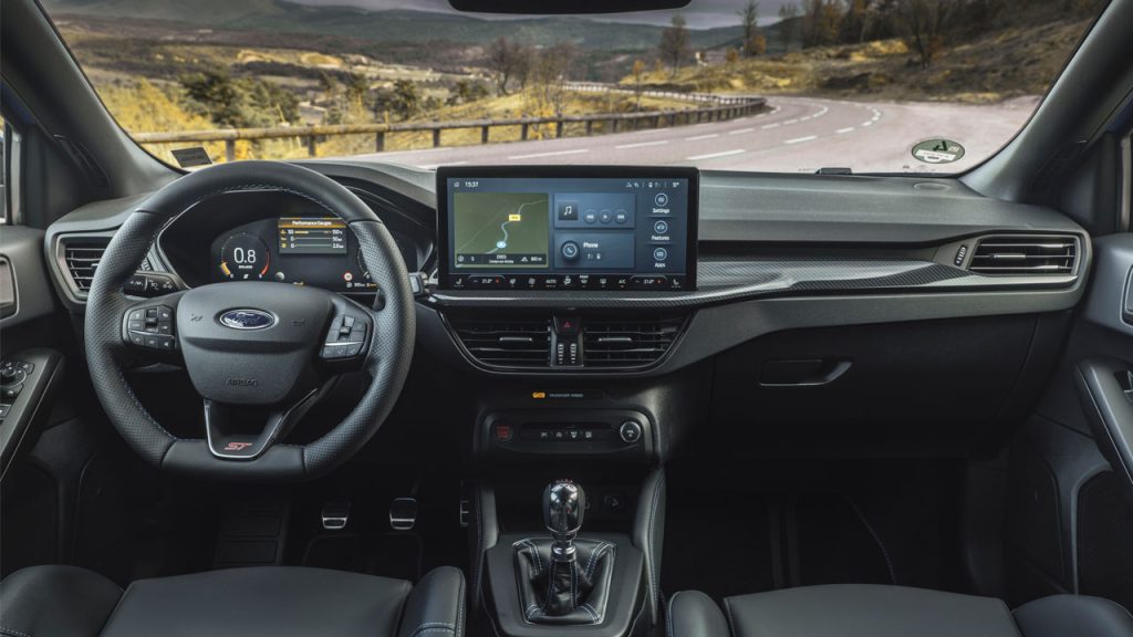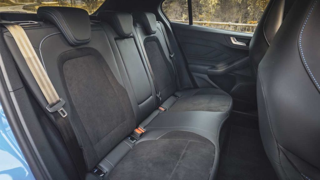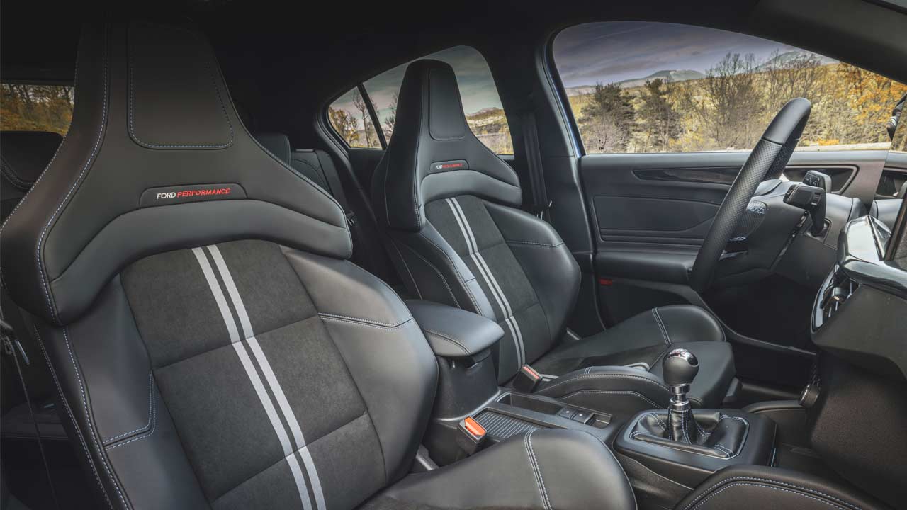 Inside, you get ‘Motion Blue’ contrast stitching and of course, Ford Performance-branded front seats. The flat-bottom steering wheel carries a neat little ST badge. As with the ST, a B&O premium audio system is also part of the standard package.