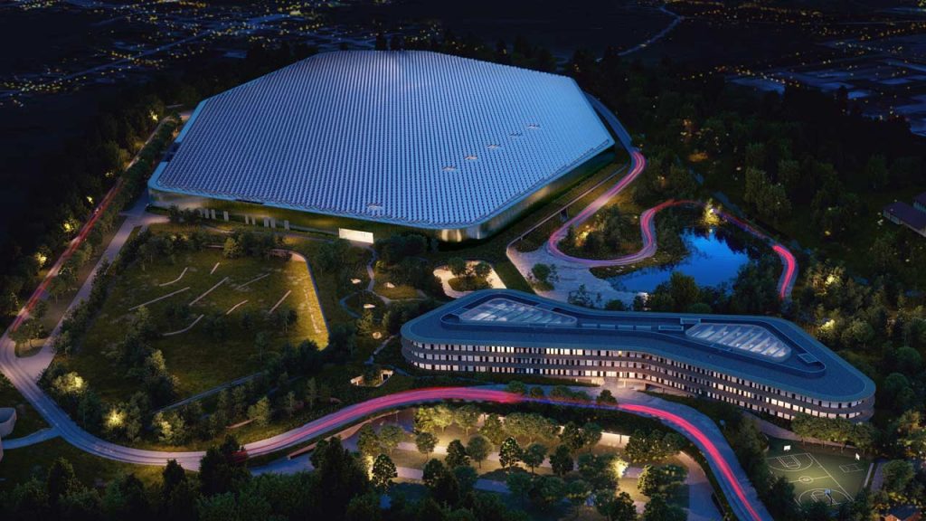 But anyway, the photos above are of the under-construction €200+ million Rimac Campus. Located about 16 km (10 mi) from Zagreb city centre and spread across an area of 208,000 m2 (51 acres), the campus is designed to employ 2,500+ people. In addition to R&D, vehicle assembly areas, and a showroom, the campus will have a large restaurant and a kindergarten with semi-open spaces for children.