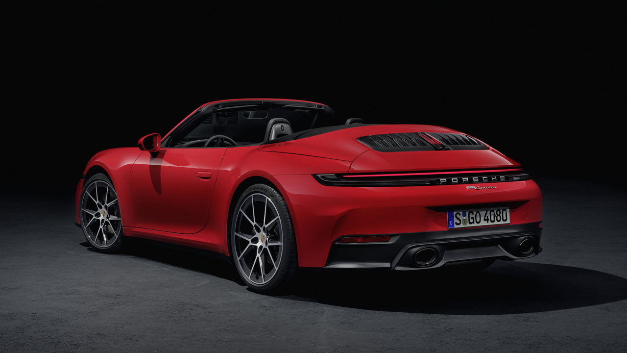 And, Porsche says that the GTS suspension has been comprehensively revised. Rear-axle steering is included as standard for the first time. In case you forgot, the GTS rides 10 mm lower. A total of seven 19-/20-inch or 20-/21-inch wheel designs are available for the new 911. Exclusive Design wheels with carbon blades are available for the Carrera for the first time.
