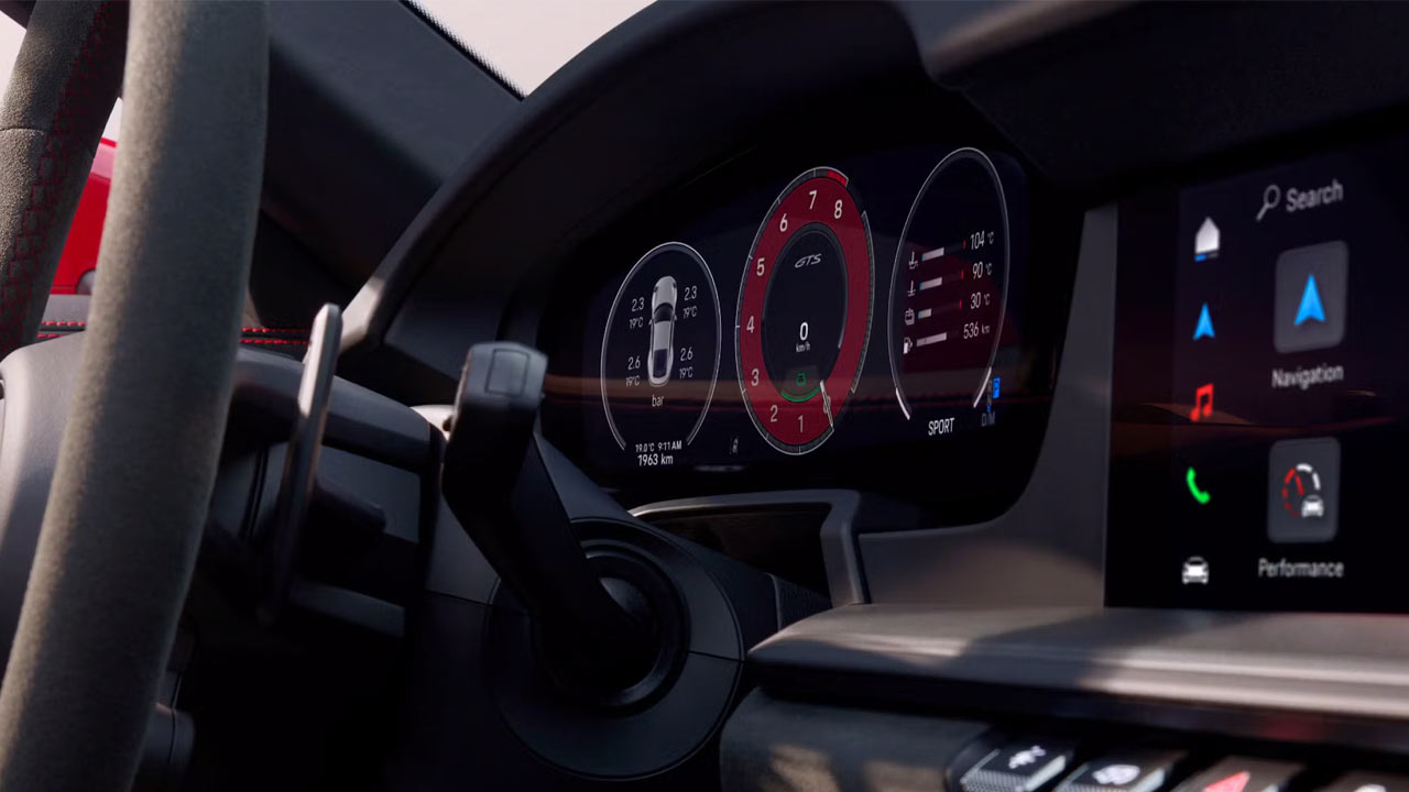 There are a bunch of changes on the inside too. For starters, the new 911 is homologated as a two-seater as standard. Which means there are not gonna be the +2 rear seats, but are available as an option at no extra charge. Another bummer is that the way you start your 911 now is via a boring start/stop button. The instrument cluster is now fully digital (12.6-inch); there’s no analog rev counter anymore, which adds to the list of bummers. But anyway, in the centre, you get a 10.9-inch touchscreen. Apps such as Spotify and Apple Music can be used as native apps on the touchscreen.