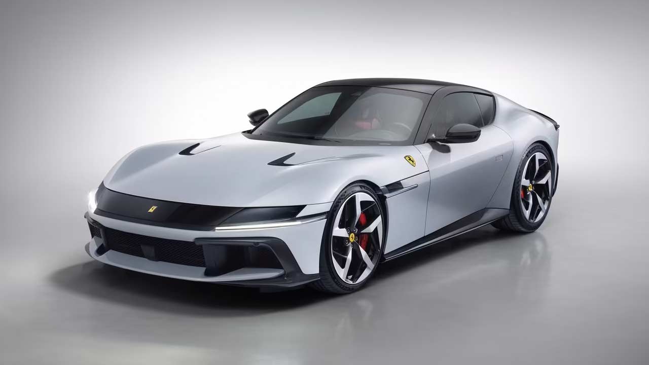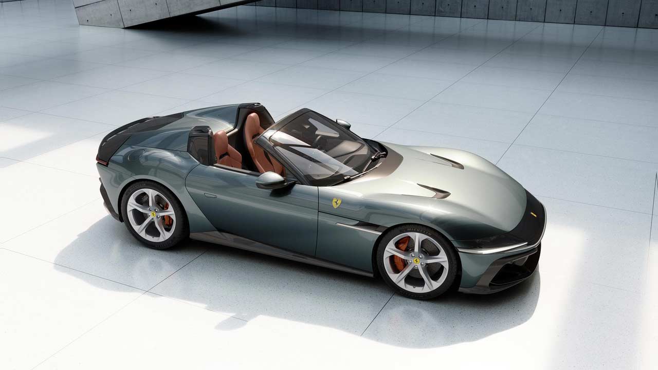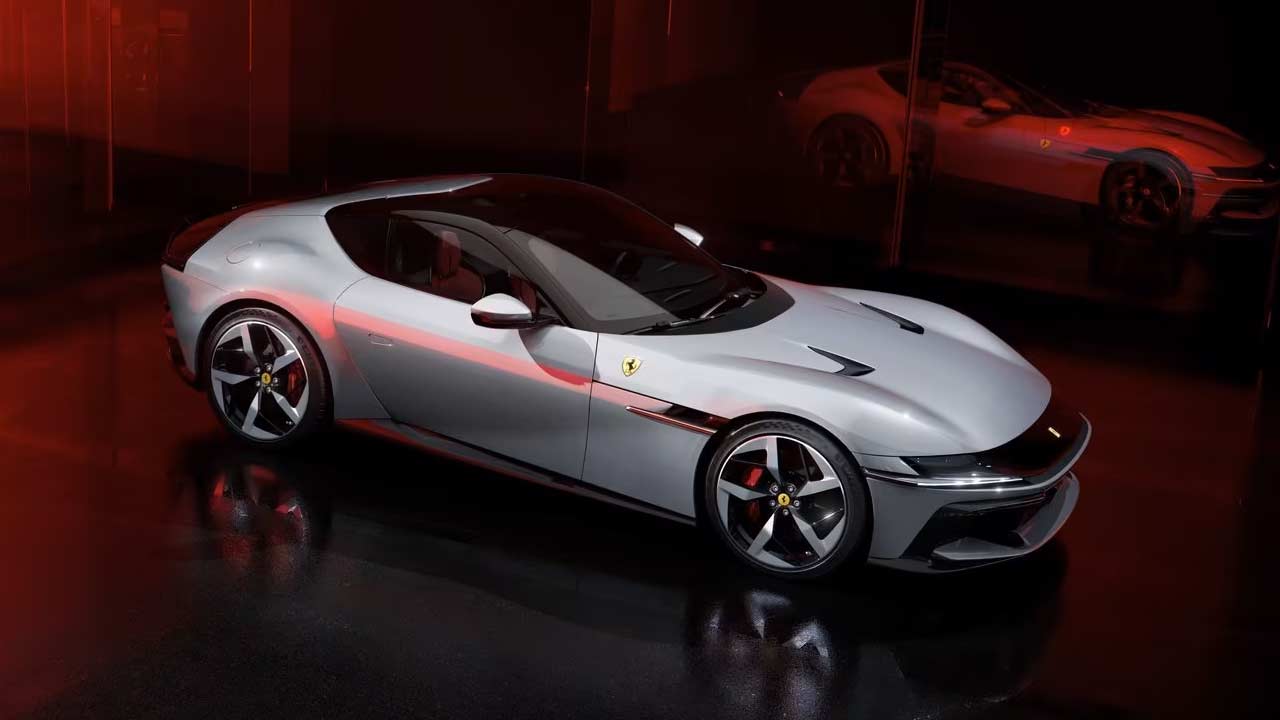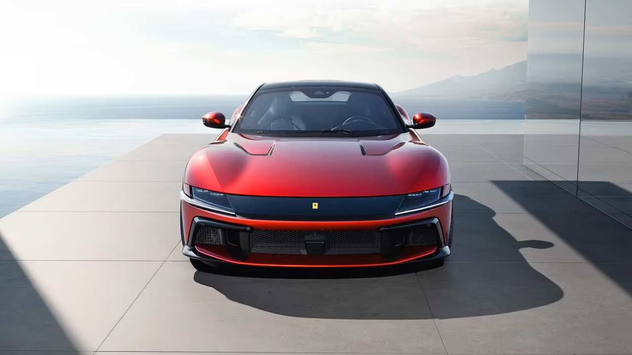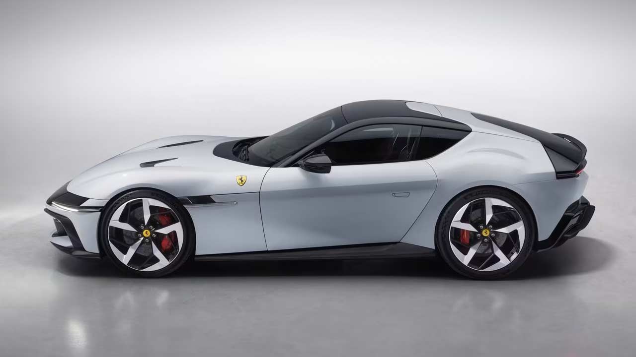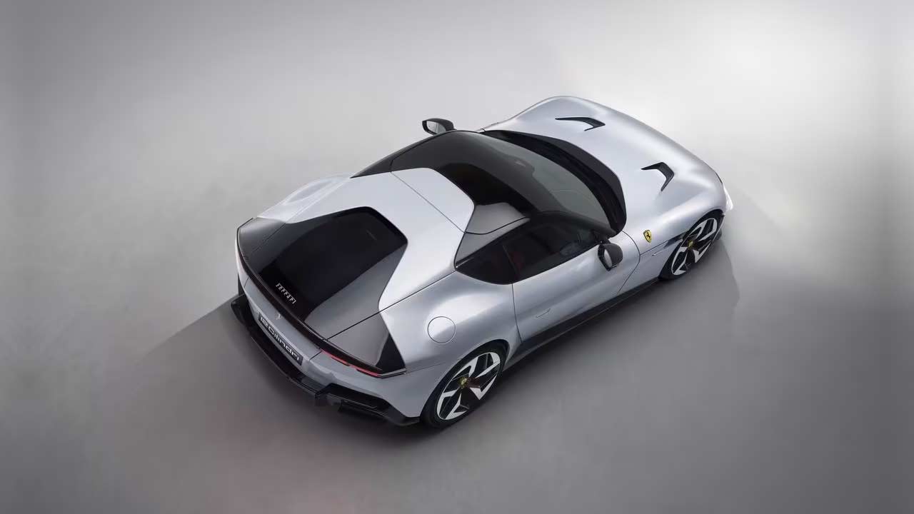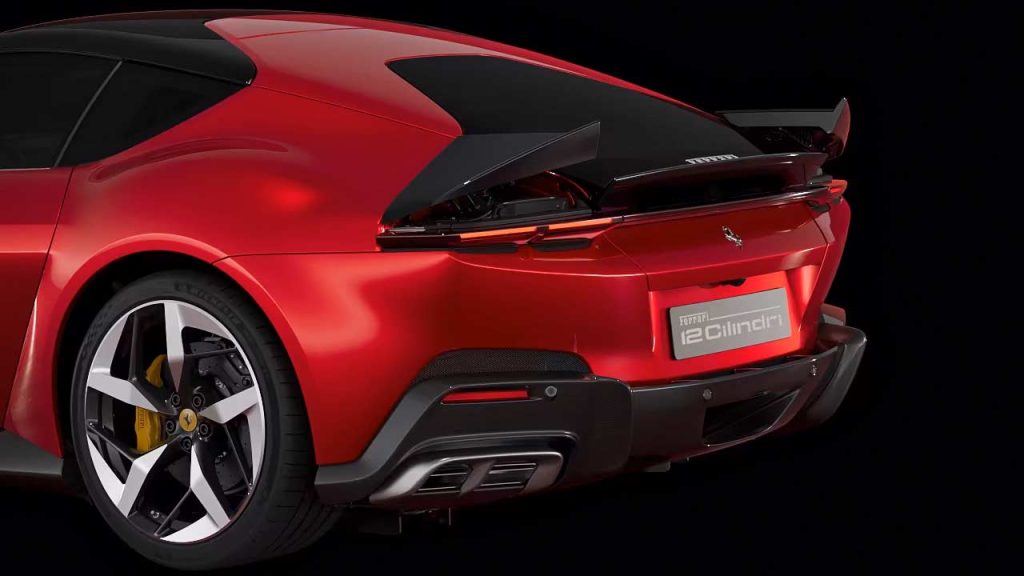 The 12Cilindri is not another super-limited-edition version of the 812 lineup but is being billed as the successor to the 812. The design is a mix of classic and recent Ferraris; while the front fascia immediately reminds you of the ’70s Daytona, the rest of the car borrows lines from multiple models including the SF90, the 812 Competizione, and also maybe Roma. From certain angles, especially the Spider version, reminds us of the Monza. The car rides on 21-inch wheels with specially developed tyre options: Michelin Pilot Sport S5 or Goodyear Eagle F1 Supersport (275/35ZR21 at the front and 315/35ZR21 at the rear). The tyres are claimed to offer—among other things—a 10% reduction in rolling resistance. Brakes measure 398 mm at the front and 360 mm at the rear.