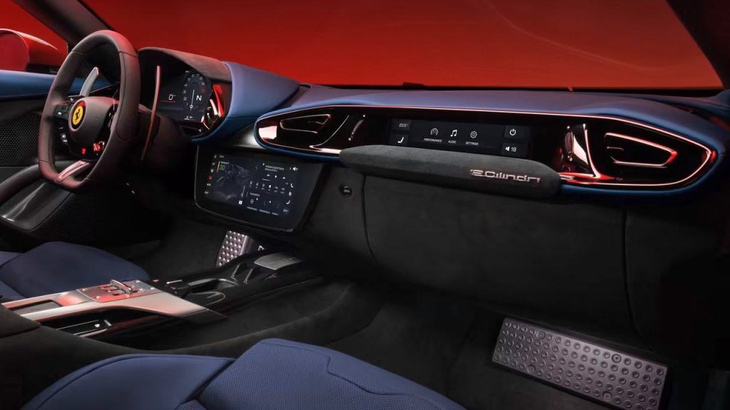 The cockpit looks familiar, unsurprisingly, but not identical to that of the Purosangue. There’s a 15.6-inch driver display, a 10.25-inch central touchscreen, and of course, an 8.8-inch passenger display. Apple CarPlay and Android Auto connectivity comes standard, while a 15-speaker Burmester audio system is optional. But I don’t understand why anyone would want that optional audio system over the symphony produced by the N/A V12 powertrain.