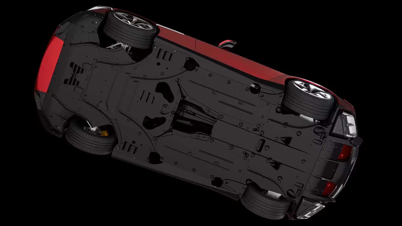 As for aerodynamics stuff, well, the cold air sucked in from the front intakes/inlets exit via the clamshell hood vents as hot air, while at the rear, those flush-fit black flaps right above the taillights pop-up depending on the car’s longitudinal and lateral acceleration (they become active between 60 and 300 km/h or 37 and 186 mi). And, of course, the brakes are also effectively cooled by the outermost front intakes. Also, notice the underbody vortex generators for downforce.