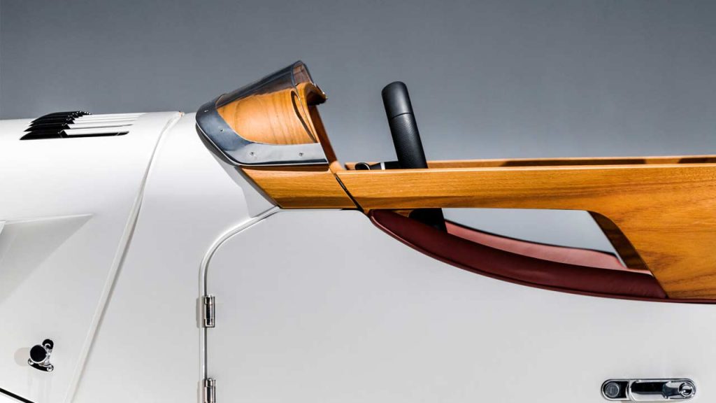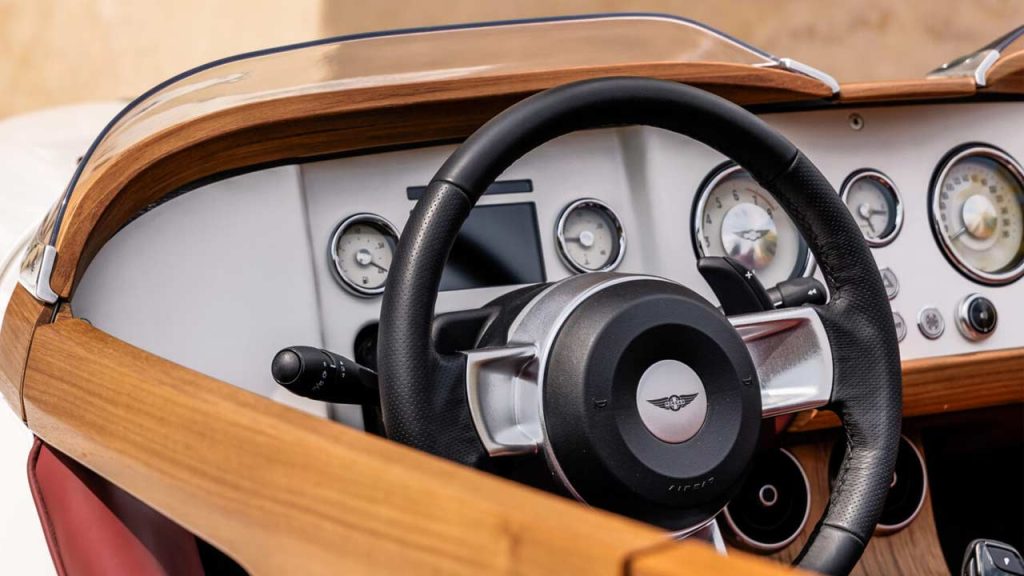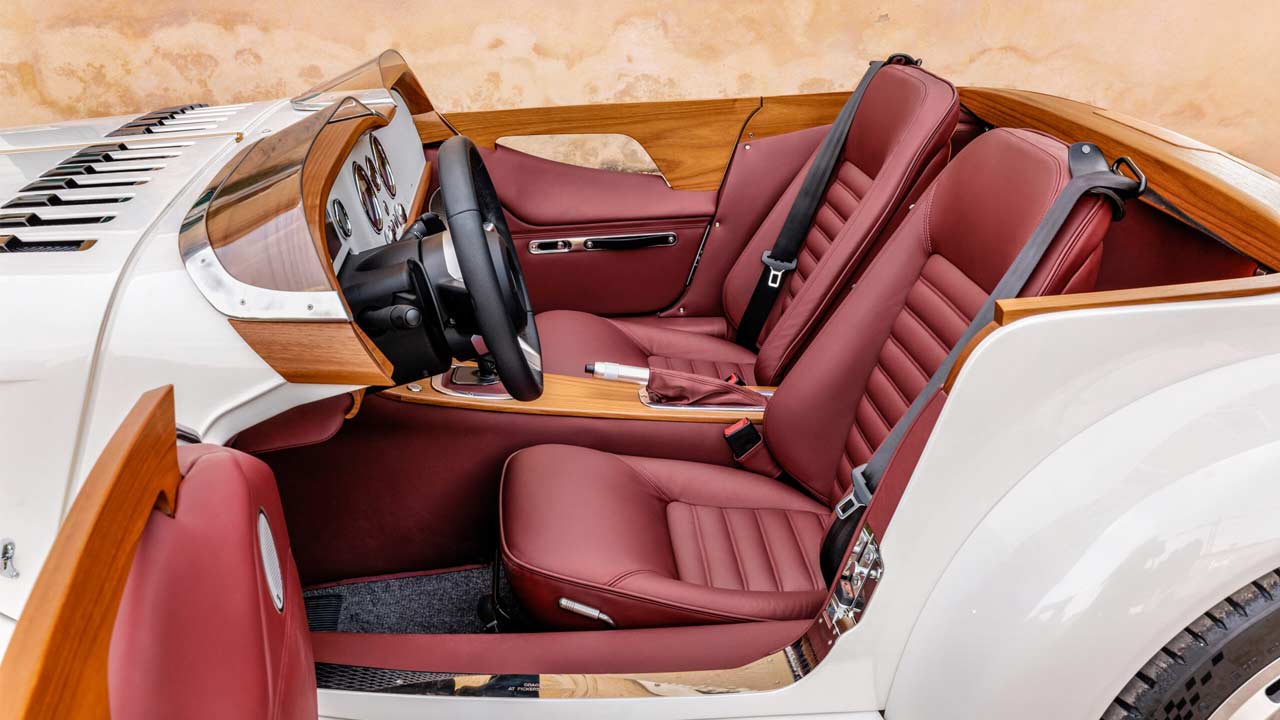 I think the proportions are just right. Apparently, Pininfarina looked at its late 30s and early 40s designs for inspiration, but either way, I think the Midsummer looks absolutely gorgeous. The visible wood that you see is teak, but I imagine Morgan could use some other wood if requested by the customer. Each Midsummer will feature 9 individually crafted teak sections, taking more than 30 hours to create. The dashboard tops, for example, feature 126 layers of teak each, while the door top sections will feature 120 layers each. Those forged wheels are 19-inches, each weighing 10 kg (22 lbs), and are wrapped with Michelin Pilot Sport 5 tyres.