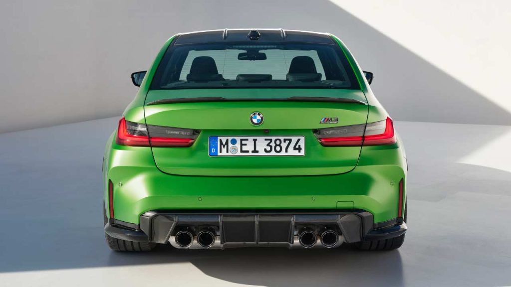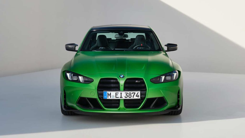 What’s new you ask? Well, there are redesigned headlight internals with claw-like vertical running lights, new forged light-alloy wheel designs in a staggered setup (18-inch front and 19-inch rear for the sedan, and 19-inch front and 20-inch rear for the estate), a redesigned M3 badge with a silver border, and.. I guess that’s pretty much it. I mean, what more do you need to change in such a short period anyway? Adaptive LED headlights with matrix high beam function are optionally available. As before, a CFRP roof comes standard on the sedan. An M Carbon exterior package is available if you want to decorate your car with more carbon fibre.