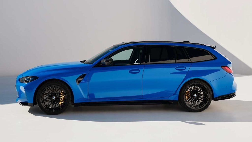 The Touring doesn’t get a CFRP roof, but it gets a high-gloss black roof as standard. But anyway, the adaptive M suspension with electronically controlled dampers comes standard. M Compound brakes are standard, while the M Carbon ceramic brakes are an optional extra; the latter offer 14 kg (31 lbs) weight savings.