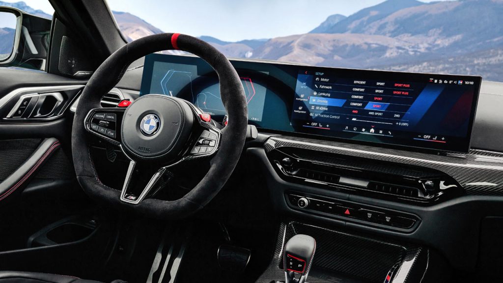 Inside, you’ll find some more carbon fibre, which all have contributed to the aforementioned unladen weight. The so-called M Carbon bucket seats come standard here. The M Drive Professional system comes standard, which includes functions such as the M Drift Analyzer, the M Laptimer, and a 10-stage M Traction Control.