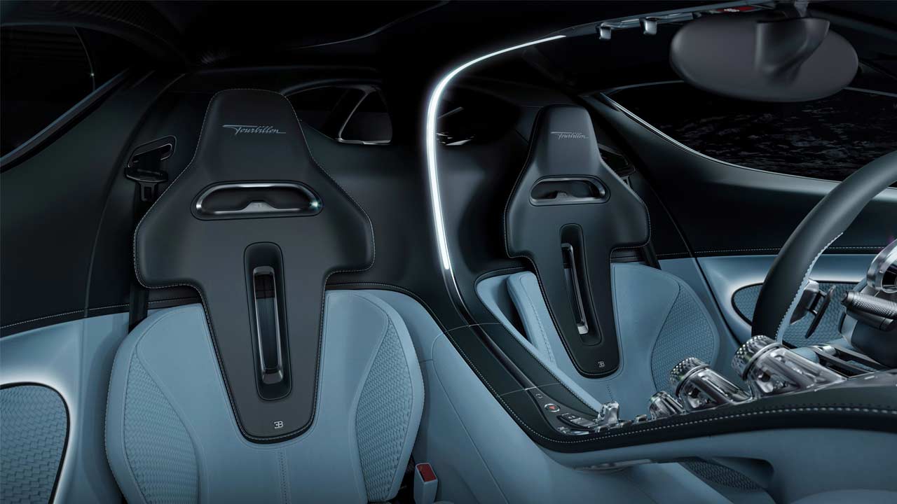Inside, there’s a bit of Pagani vibes, thanks to the intricate detailing of the instrument cluster—inspired by luxury mechanical watches. Bugatti claims to have worked with Swiss watchmaking experts for this exquisite cluster—which is made up of more than 600 parts with materials including titanium and gemstones such as sapphire and ruby. The central console design is just as intricate and houses a hidden touchscreen that can pop-out when needed. The seats are fixed to the floor, but the pedal box is adjustable for reach. Another key highlight of the Tourbillon’s interior is a bespoke audio system without traditional speakers and woofers. Instead, there are exciters on the door panels and throughout the car, which enable some interior panels to function as speakers. Not sure how good this setup is, but apparently, it offers weight benefits. But hey, I’m pretty sure those 250 people wouldn’t care much about the audio system when there’s a N/A V16 behind them.