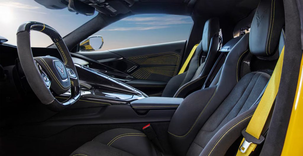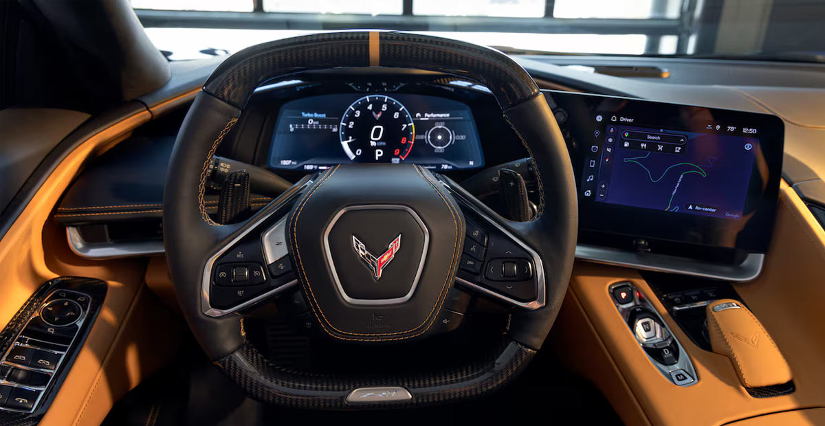 Inside, key features depending on the trim include a 12-inch digital cluster, 8-way power GT1 or Competition Sport seats (1LZ), heated and ventilated Nappa leather GT2 or Competition Sport seats with power lumbar/wing adjust (3LZ), 10-speaker Bose premium sound system (1LZ), 14-speaker Bose Performance Series sound system (3LZ), HD Rear Vision Camera and Rear Camera Mirror, and leather-wrapped steering wheel with carbon-fiber trim and shift paddles.
