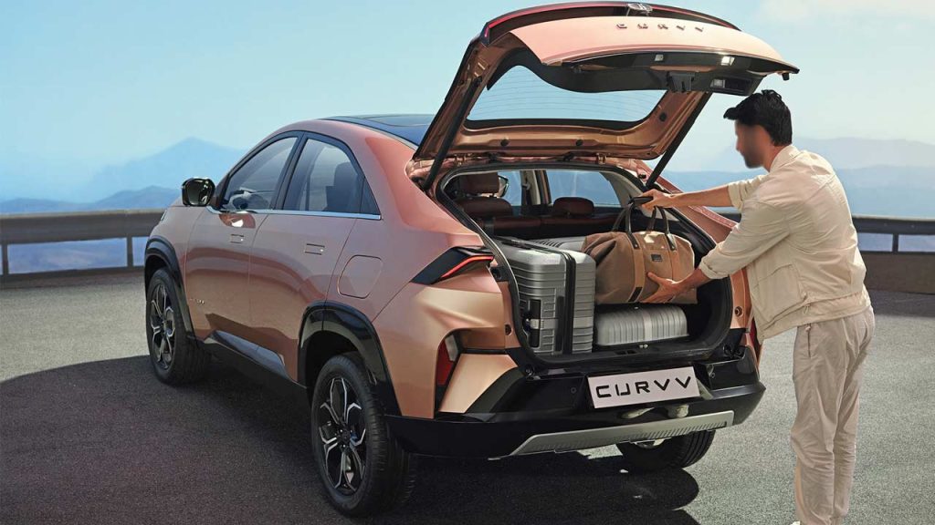 The above photos are of the ICE-powered Curvv, but you get the idea. Key features inside include a 10.24-inch digital cluster, a 12.3-inch central touchscreen, Android Auto & Apple CarPlay connectivity, Alexa voice assistant, 6-way power-adjustable driver seat, JBL audio system, and air purifier with AQI display.