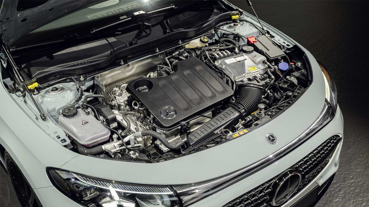 The hybrid CLA is a combination of a new 1.5-litre 4-cylinder turbocharged petrol engine (M 252) (Miller cycle), designed for reduced NVH, efficiency and future emission standards. The engine is coupled with a 48-volt mild-hybrid system. The lithium-ion battery pack has only 1.3 kWh capacity, but at slow speeds and for short distances, electric-only driving is possible. The electric motor is integrated into the 8-speed DCT.